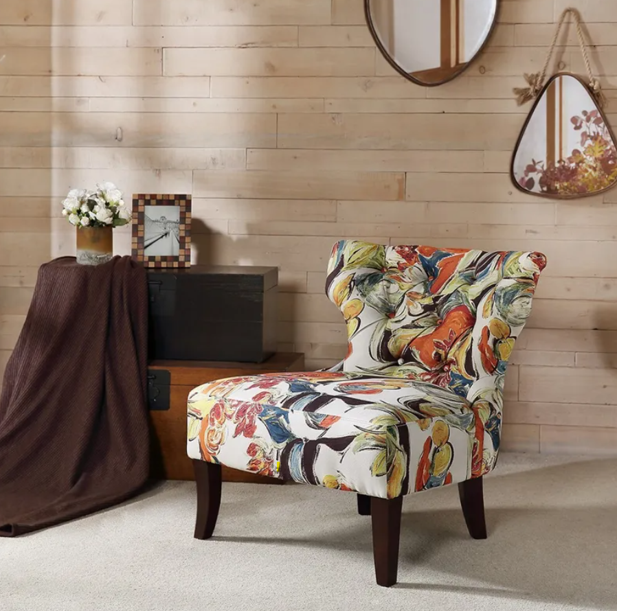 The Erika Accent Chair is a standout example of this trend’s staying power. Upholstered in a chic printed fabric, this armless accent chair features a low back and attached cushion that feels modern and approachable. Solid wood legs ground the design, while the eye-catching pattern brings instant visual interest. It’s an ideal way to introduce bold print into a living room while maintaining a curated, contemporary look.