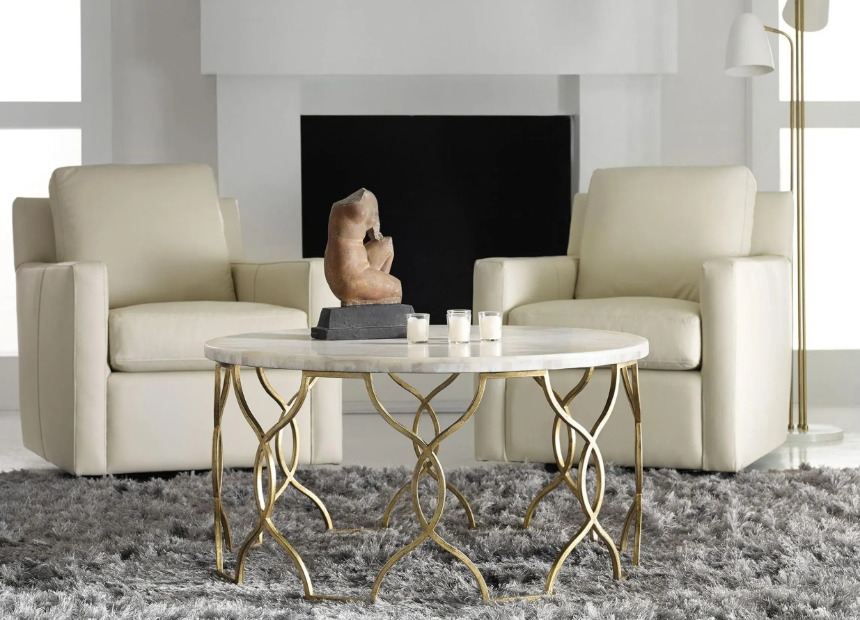 The Melange Corrina Onyx-Top Cocktail Table beautifully captures this evolution. Featuring a delicate fretwork metal base in a gold leaf finish paired with a round white onyx top, this piece blends lightness with organic elegance. Its mix of materials and textures reflects the eclectic, artistic spirit that emerged in 2025 — and continues to elevate living spaces with sculptural sophistication in 2026.