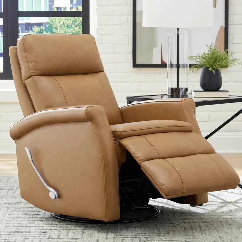 -Parker House Bristol Russet Swivel Glider Recliner: This manual swivel glider recliner features a soft yet durable fabric that feels cool to the touch, even on warm afternoons. Its smooth gliding motion and classic russet finish make it perfect for relaxing in your desert-inspired living room without overheating.