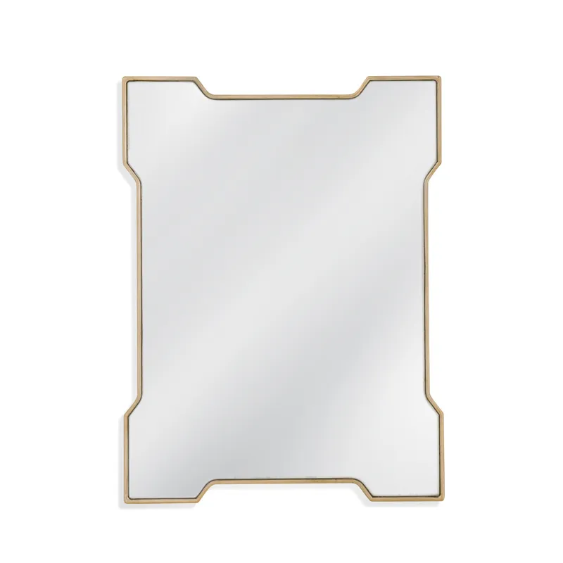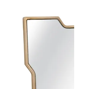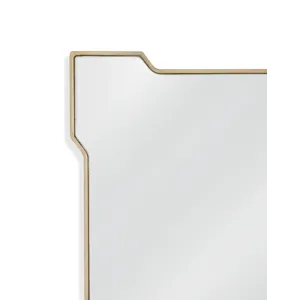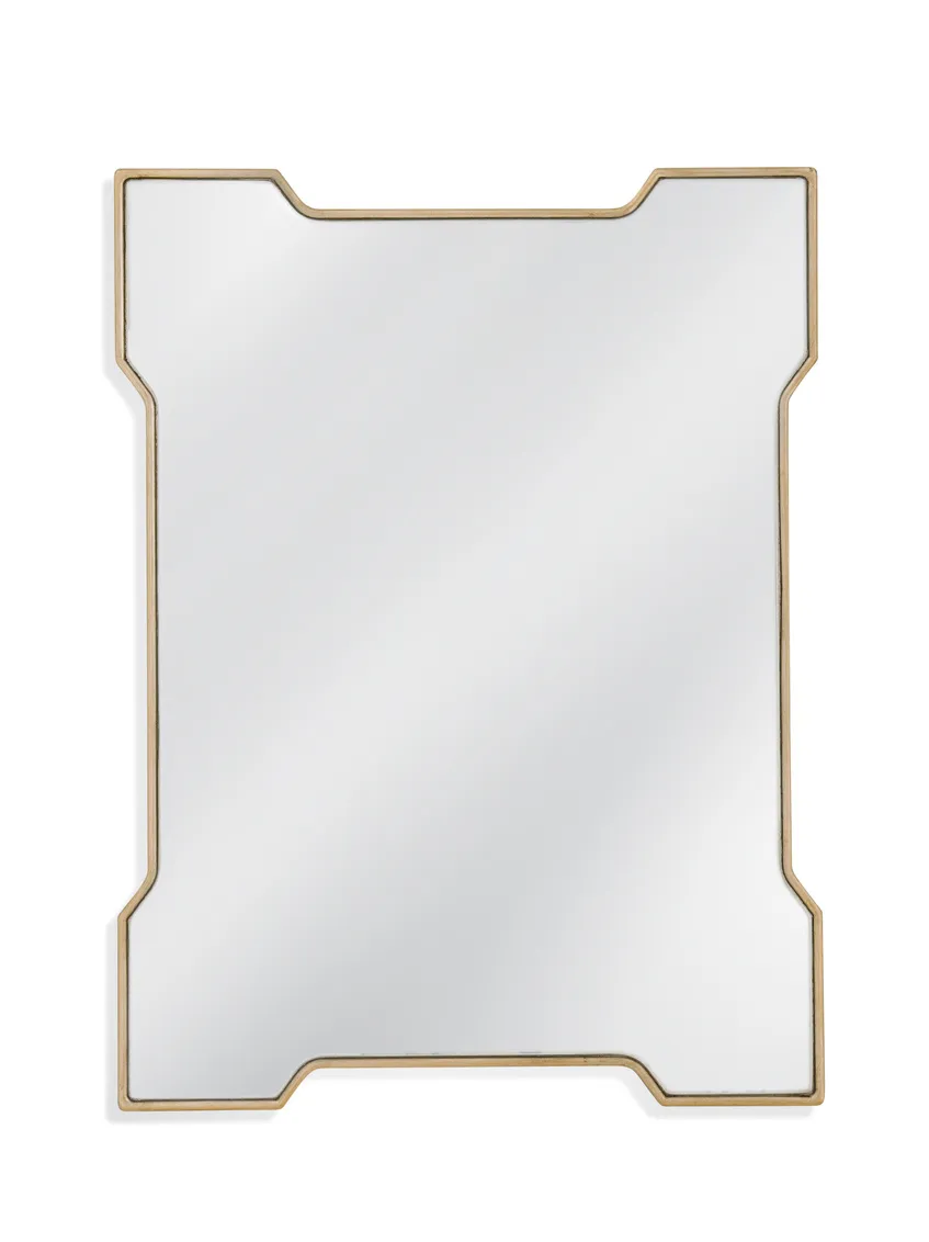 The Park Place Wall Mirror boasts a rectangular shape with a geometric style frame, adding a touch of modern elegance to any space with its gold finish.Crafted with attention to detail, this mirror effortlessly blends modern and traditionall aesthetics, making it a versatile addition to any room. Elevate your decor effortlessly with the sleek and stylish Trident Wall Mirror.