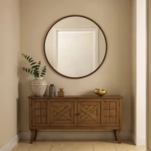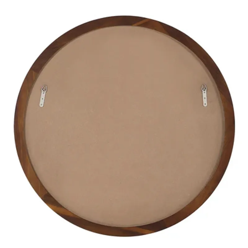 Discover this clean-lined round mirror to give your design project style without sacrificing function. Crafted with high-quality distortion-free glass and a walnut-finished frame, this round mirror would be perfect hanging on its own or mixed into a gallery wall for an eye-catching impact.