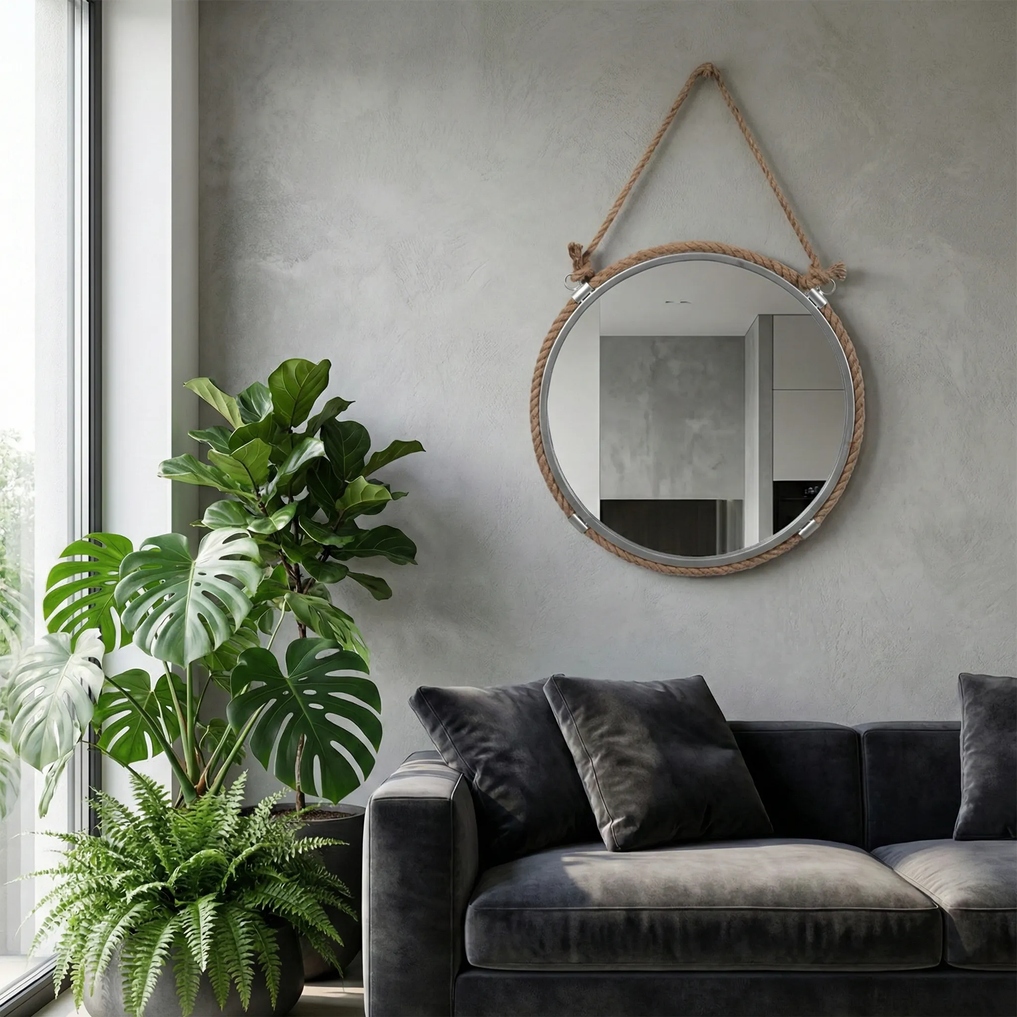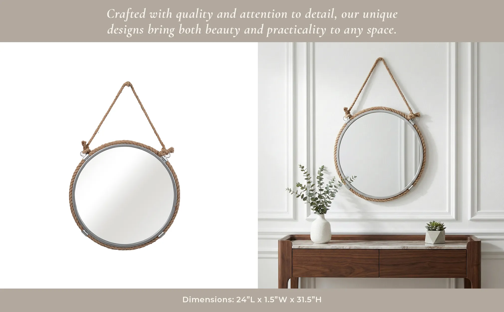 The Ec Metal 24" Mirror With Rope, Silver/natural may be available at Designer Furniture Gallery in the St. George and St. George areas. Please contact us to check availability.