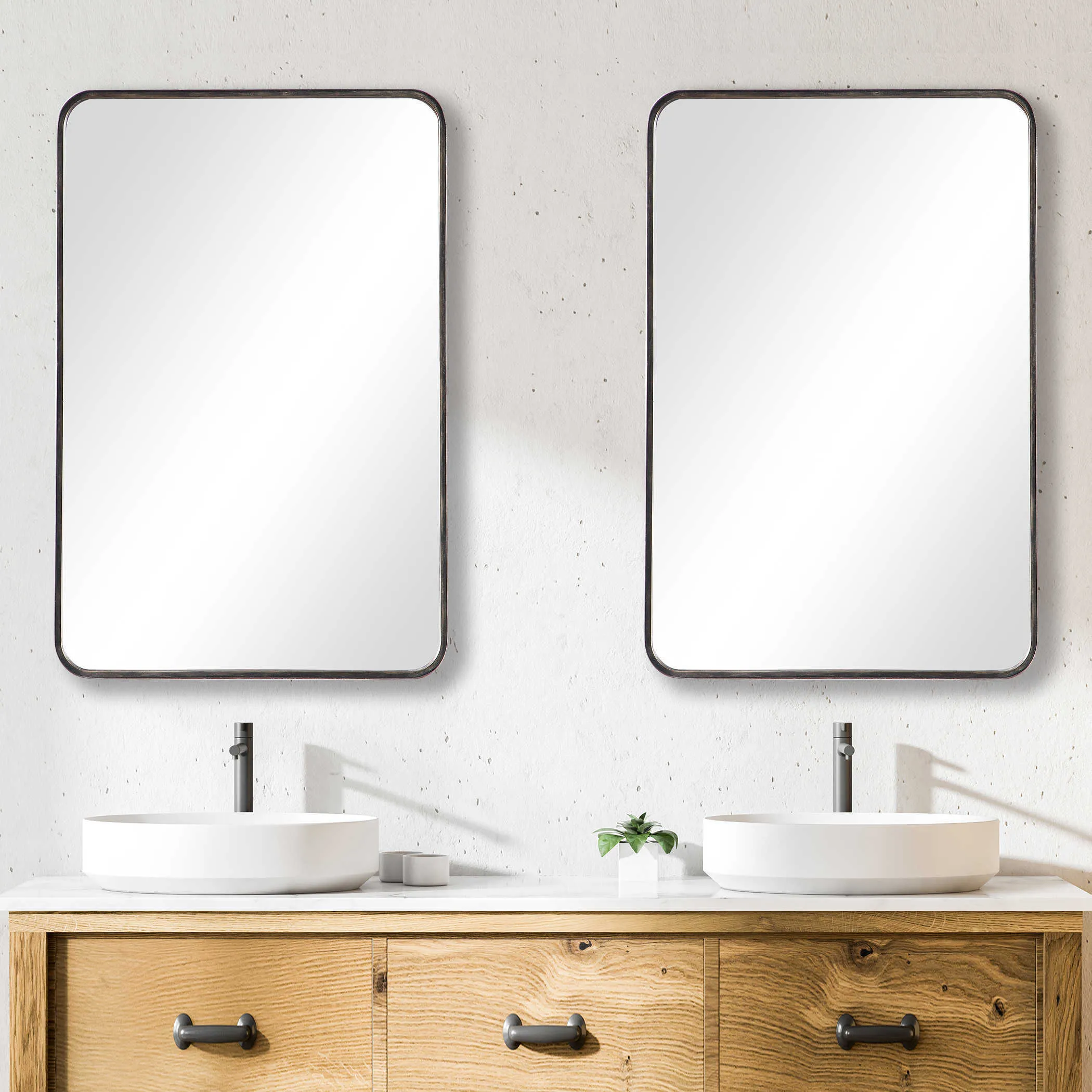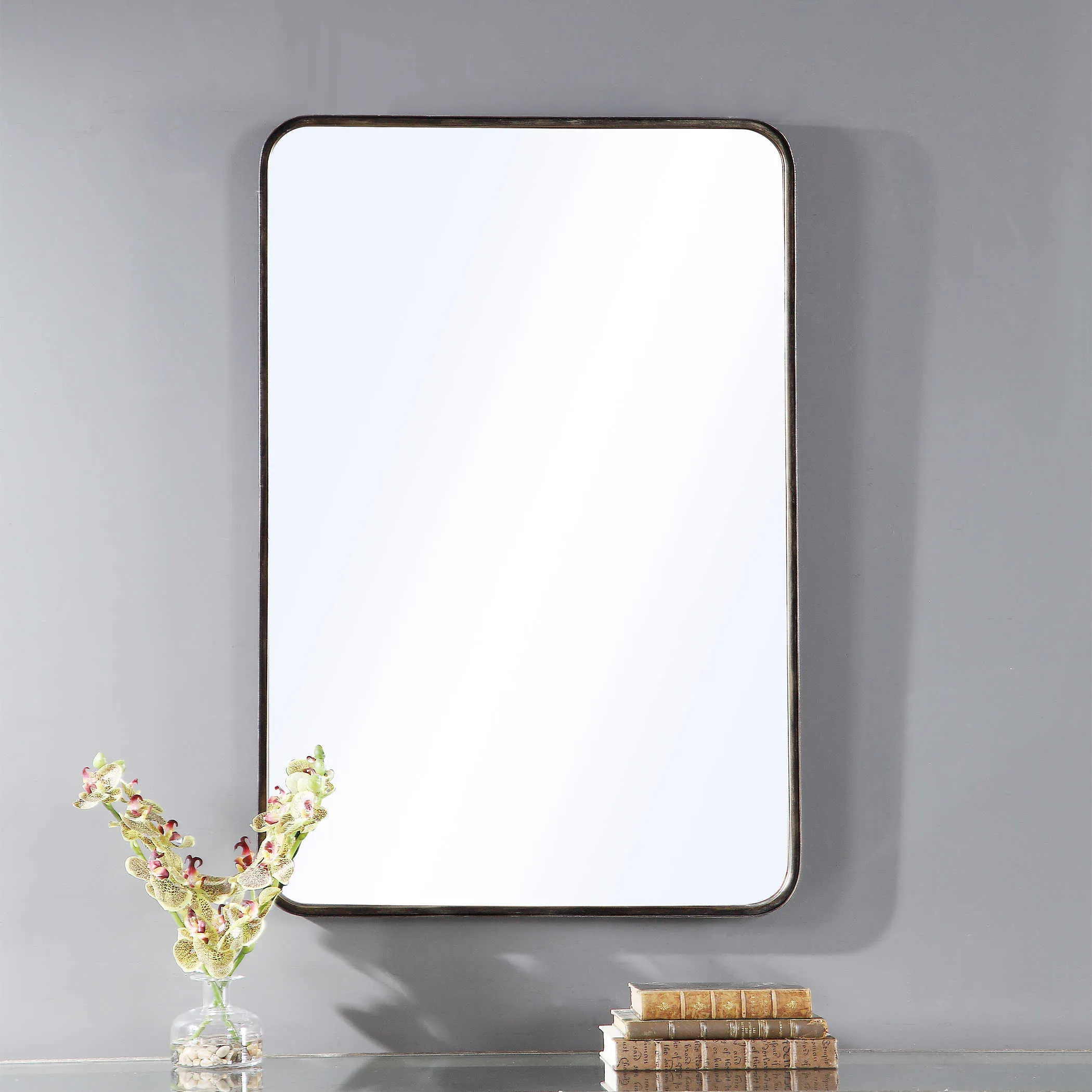 The rounded corners of this metal frame give a softer look and uniqueness. It is finished in a dark bronze with gold highlights. May be hung either vertically or horizontally.