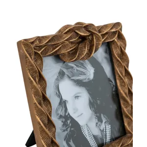 Blending the intrigue of vintage art with the charm of nautical decor, this photo frame features a square silhouette, an aged bronze finish, and a textured rope design. Perfectly sized for your nightstand, mantel, or tabletop, it will elevate any setting while displaying your cherished memories.
