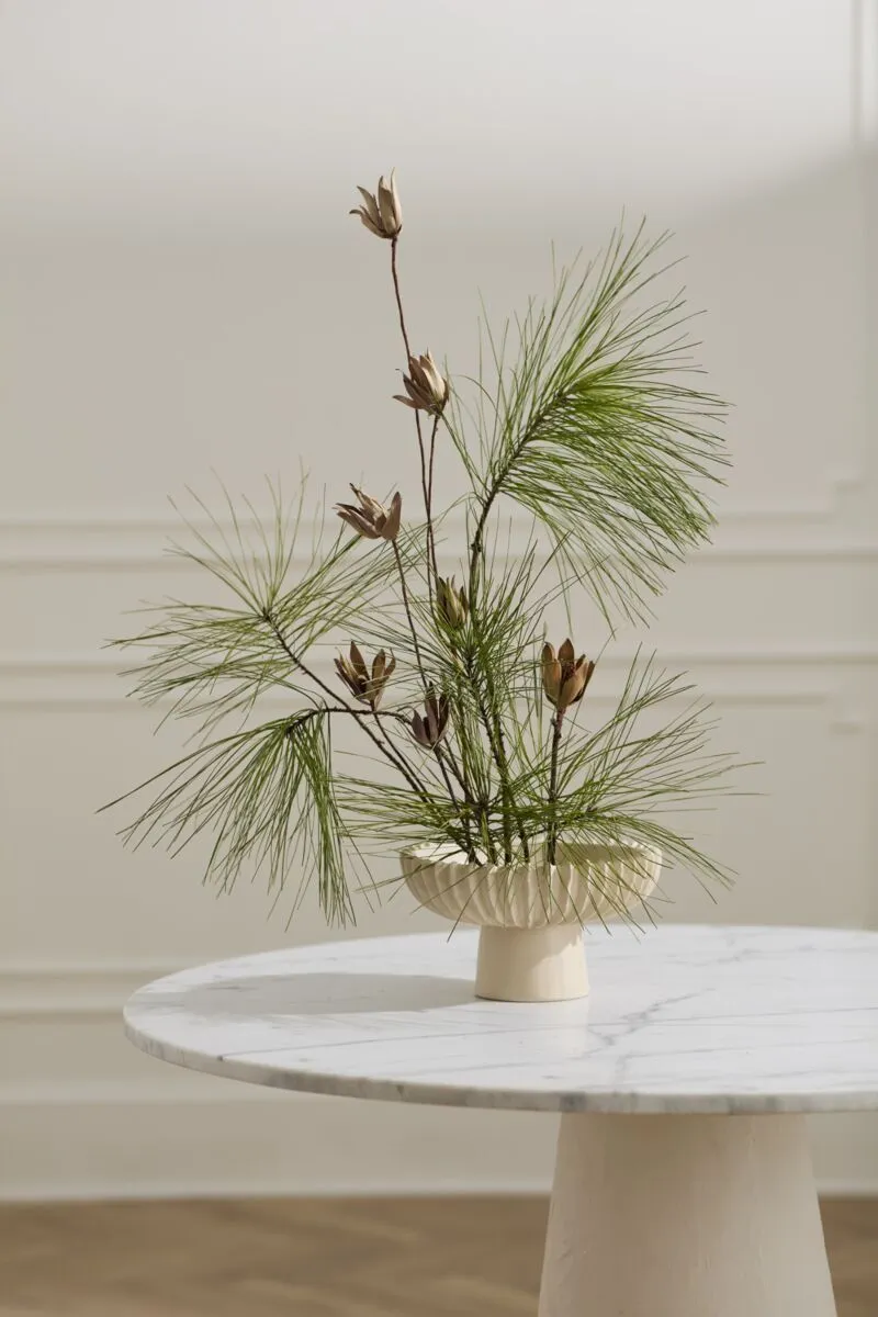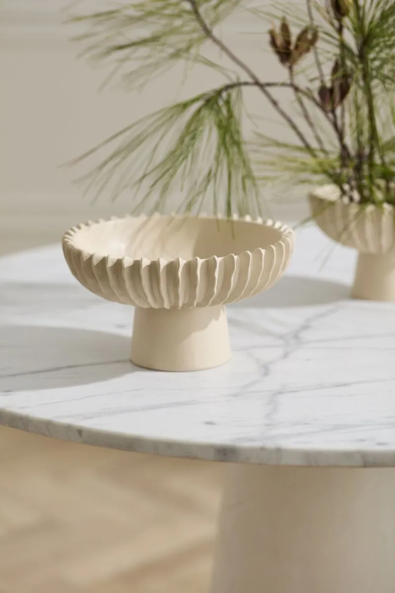 Inspired by Ikebana floral design & made with versatility in mind, the ceramic Belden Footed Bowl brings artful, functional interest to interiors. Featuring raised dimensional ridges reminiscent of coral, the Belden is ideal for both florals or small plants like succulents & moss. With a creamy smooth semi-gloss finish, this neutral piece fits with any interior decor & design scheme.