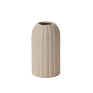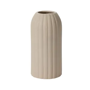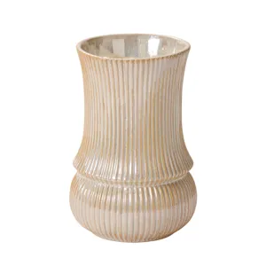 Earth tones created by a reactive glaze give the medium Fault Line Vase a unique, gourd-like surface appearance, while vertical, textured lines & color variation add interest to the simplicity of the cylindrical shape. Layer into shelf decor & add a few dried or fresh stems in the small opening for a pop of color & dimension.