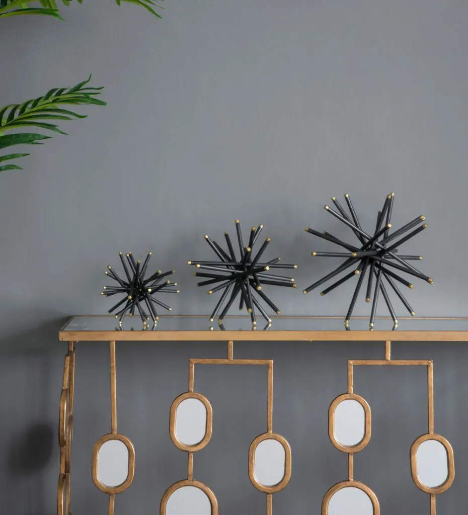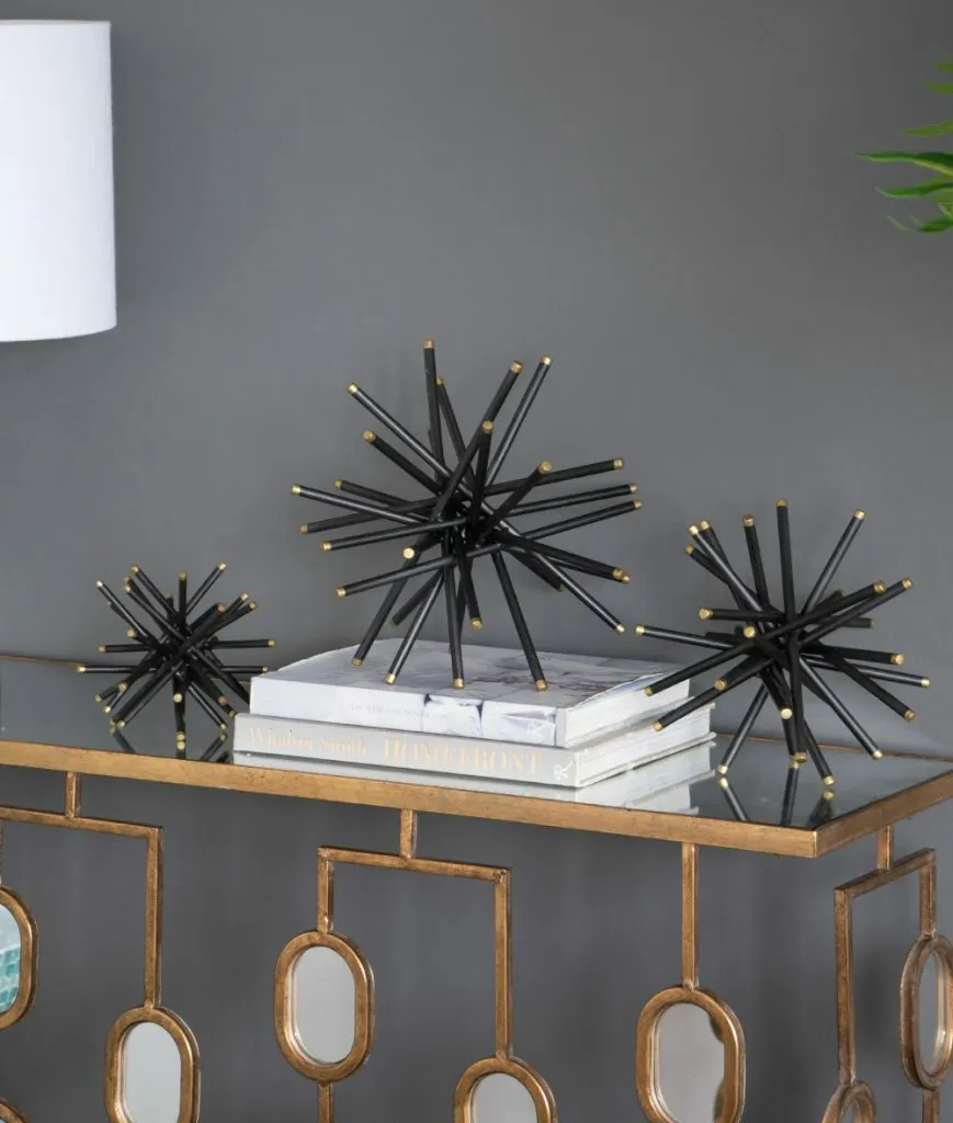 Elevate the look of your decor with these on-trend home accents. The Caper metal statuaries feature a modern abstract design crafted in iron rods finished in black matte paint with metallic gold tips. Theyre perfect for creating a brilliant focal point in any setting.