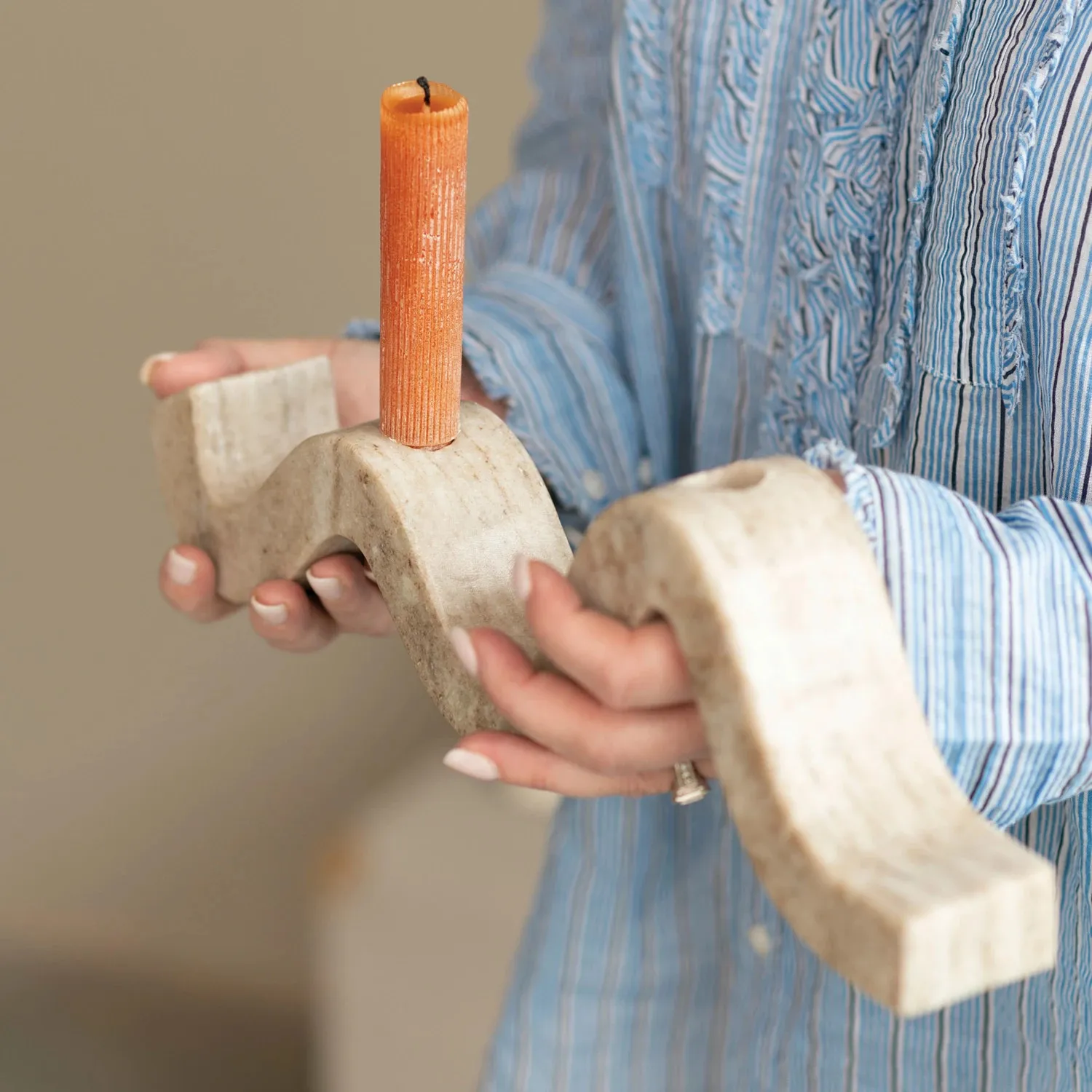 14-1/2"L x 2"W x 4"H Marble Wave Double Taper Holder, Beige