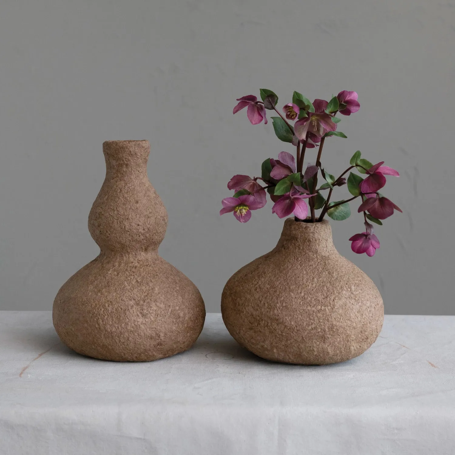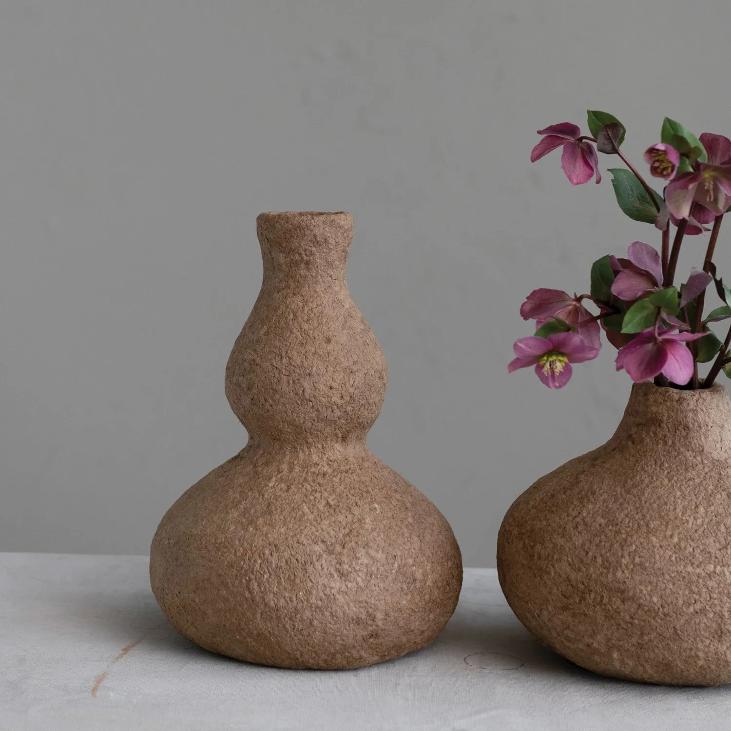 9-1/2" Round x 14-1/4"H Decorative Handmade Paper Mache Vase, Brown (Each One Will Vary)