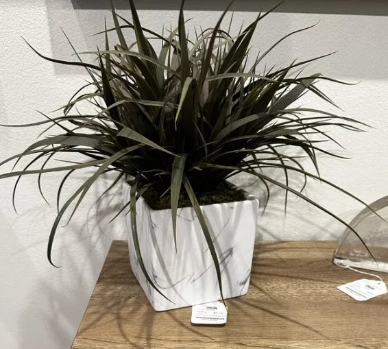 SQUARE MARBLE; CERAMIC VASE; GREEN GRASS IN LRG