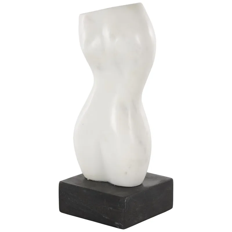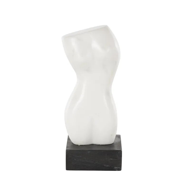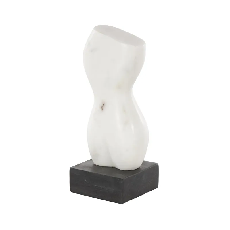 White Marble Woman Abstract Female Form Decorative Sculpture with Black Block Base