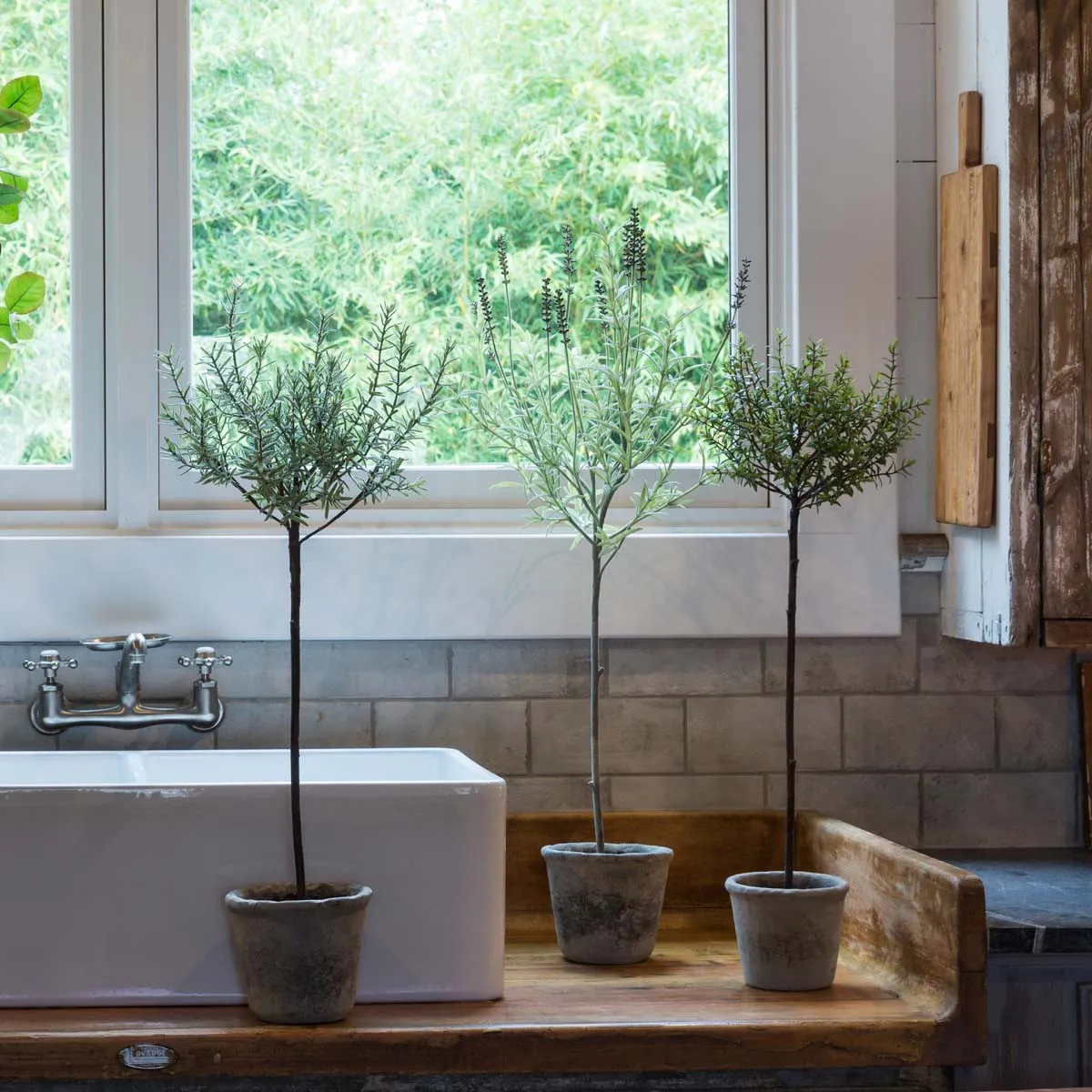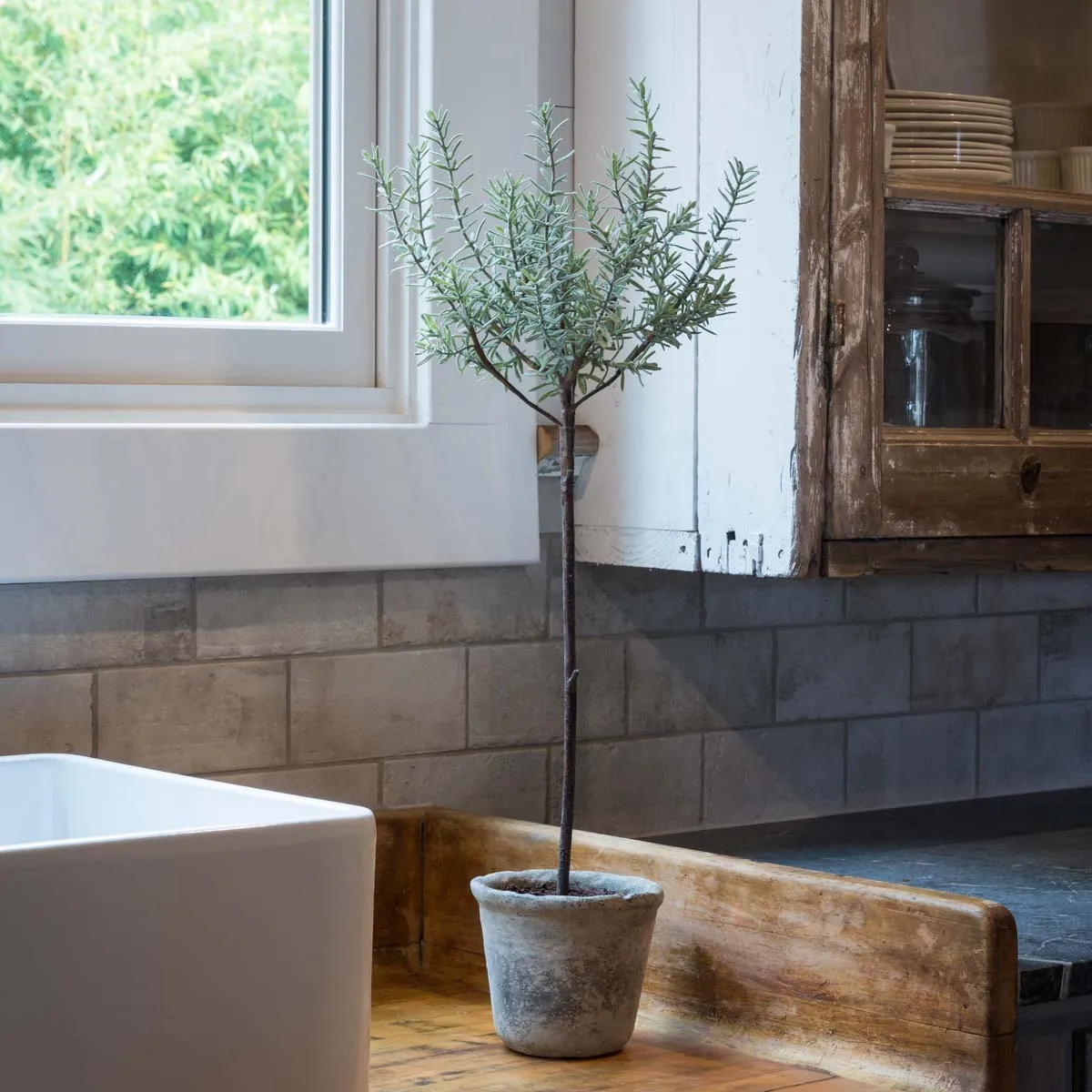 Appearing as though it came straight from your herb garden, this potted rosemary topiary lends its lifelike charm to any room.
