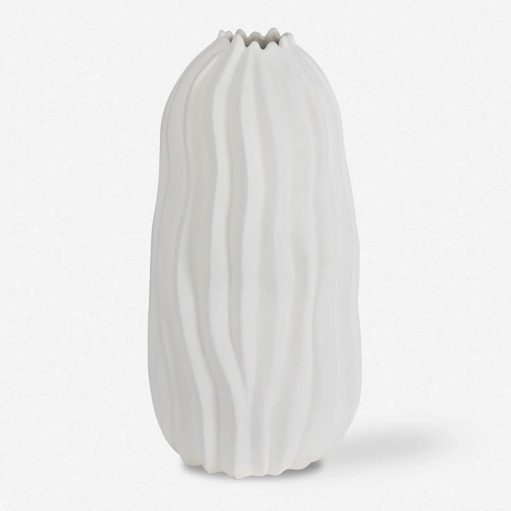 Large and versatile, this floor vase features organic lines and angles for a design that brings depth and intrigue to any space. Made from ceramic in a matte white glaze that brings a sleek, modern vibe to the corner of your living room or entryway. Instead, add a bunch of faux florals or other decorative plants for a standout look.