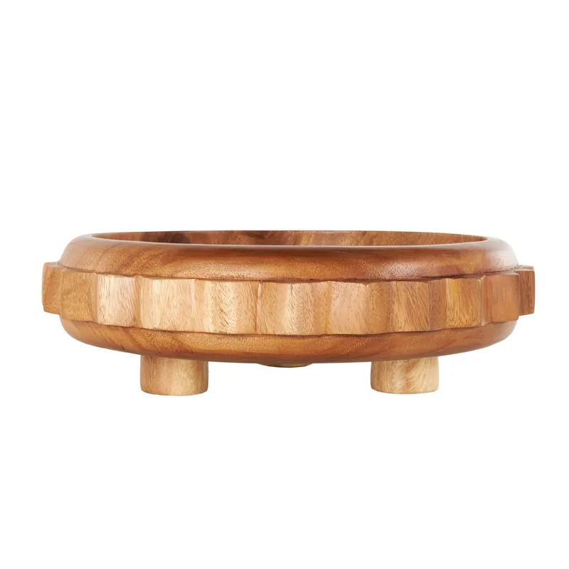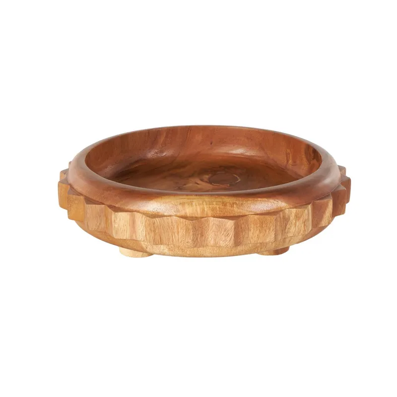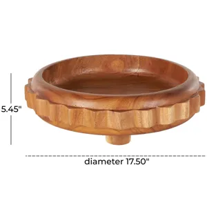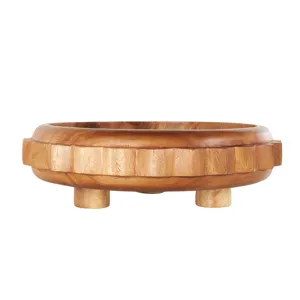 Brown Teak Wood Gear Handmade Large Decorative Bowl with Peg Leg