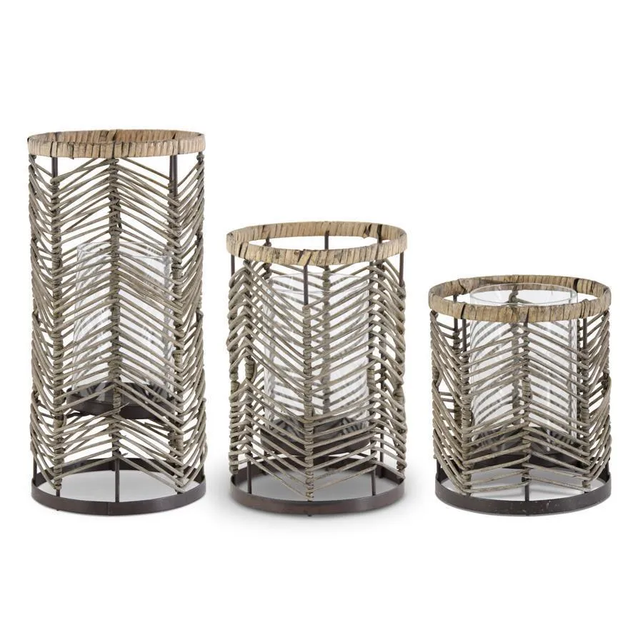 The Chevron Patterned Bamboo & Metal Candleholder w/Glass Hurricane - Set of 3 may be available at Designer Furniture Gallery in the St. George and St. George areas. Please contact us to check availability.