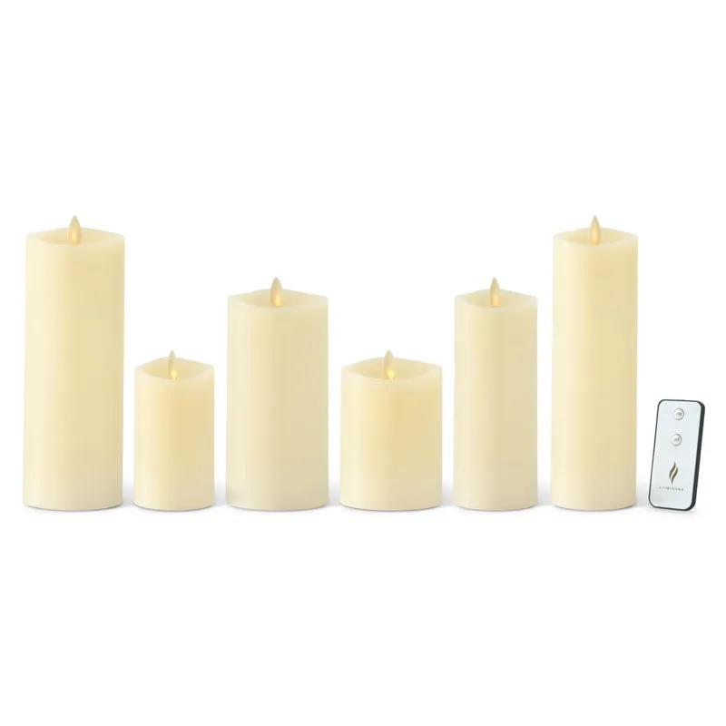 The Ivory Wax Luminara Slim & Medium Indoor Pillar Candles w/Remote - Set of 6 may be available at Designer Furniture Gallery in the St. George and St. George areas. Please contact us to check availability.