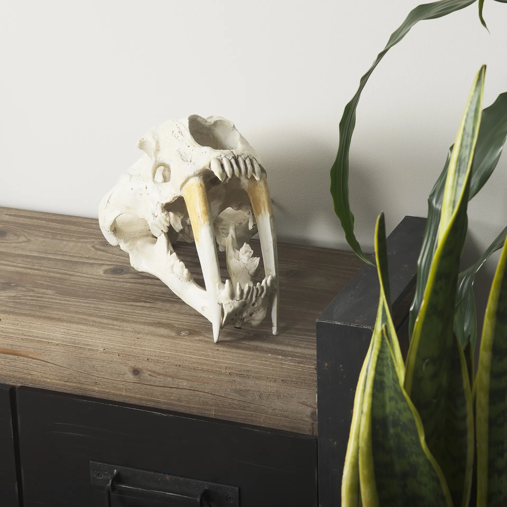 The Fozzil, a sabretooth skull replica crafted from resin, is a beautiful and unique addition to your space.