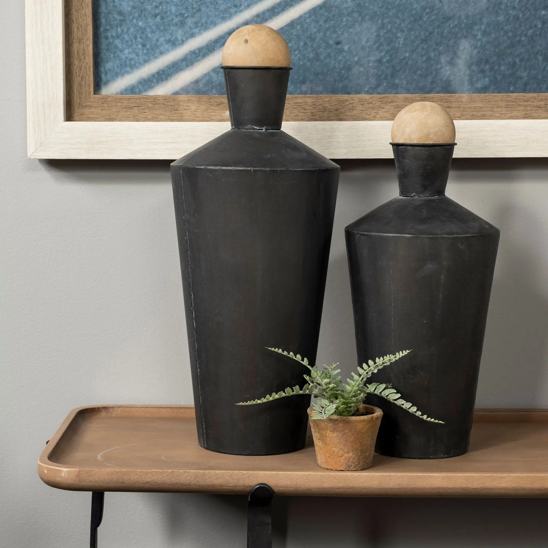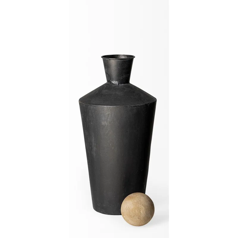 Crafted from metal and finished in a matte-black tone, the Asher is a decorative object that is shaped like an urn with wooden stopper on the opening. With a contemporary design based on clean lines, the Asher urn makes for a great addition to any space and setting.