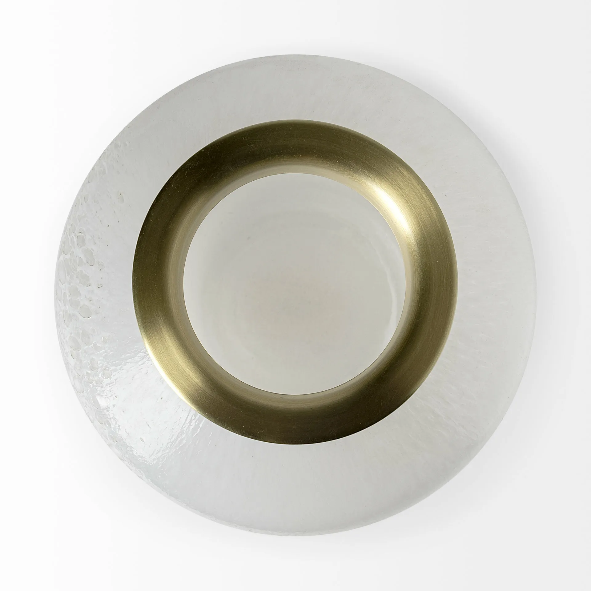 Crafted from glass, the Pearl is a spectacular vase finished in a white tone with freckled details on the exterior, in addition to a gold-tone, metal cladding on the neck.
