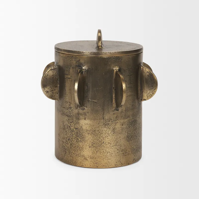 Deacon Large Antiqued Gold Metal Canister with Sculptural Handles