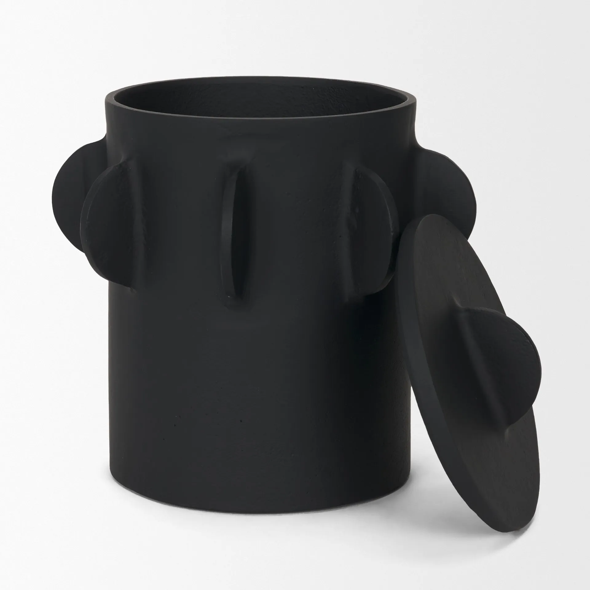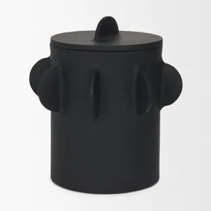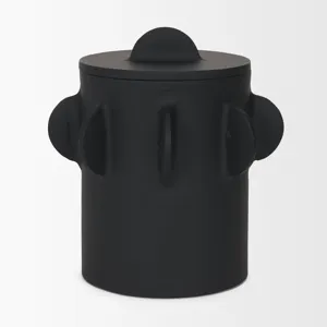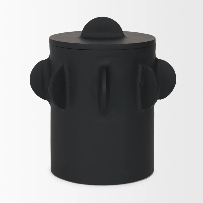 Deacon Large Matte Black Metal Canister with Sculptural Handles