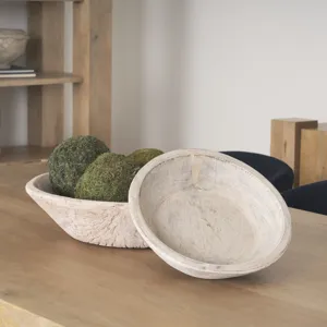A set of 2 bowls that are artfully hand-crafted out of solid reclaimed wood with a soft, pink undertone and white-wash finish. The Nikita Light Brown bowls are artfully crafted out of solid reclaimed wood with a distressed texture. The true character and main highlight of these bowls are the organic imperfections giving each piece a one-of-a-kind look, which adds to the style and rustic appeal.