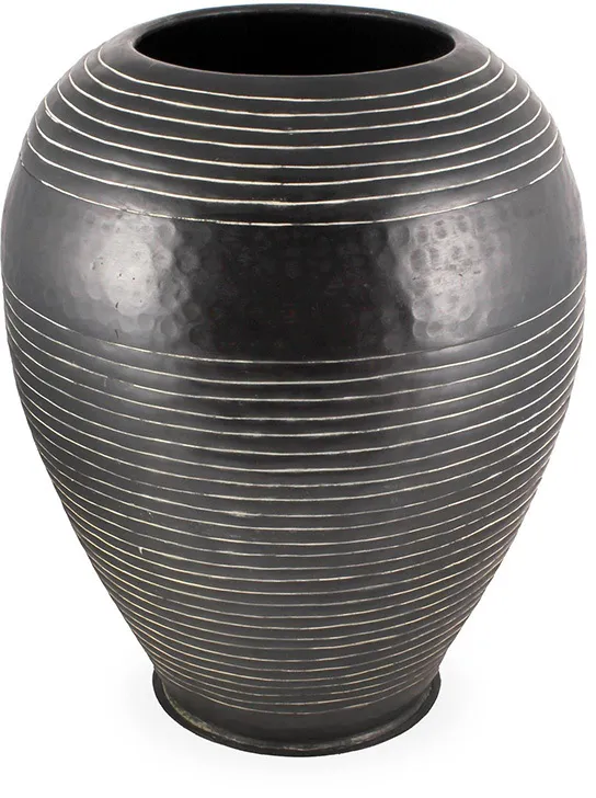 This uniquely textured aluminum vase features a chevron pattern in a gorgeous black detailed finish. Dimensions: 11.5 x 11.5 x 13.75" Artist: Jonathan Wilner