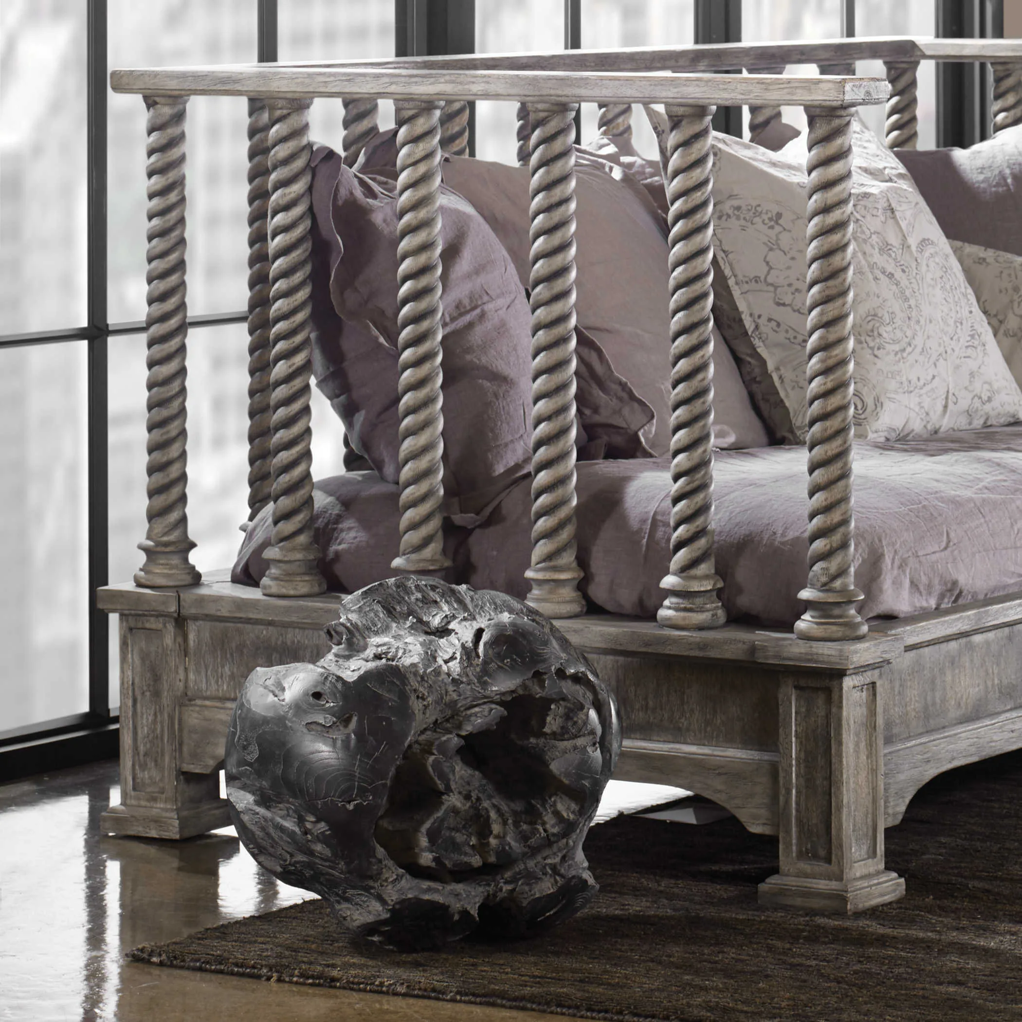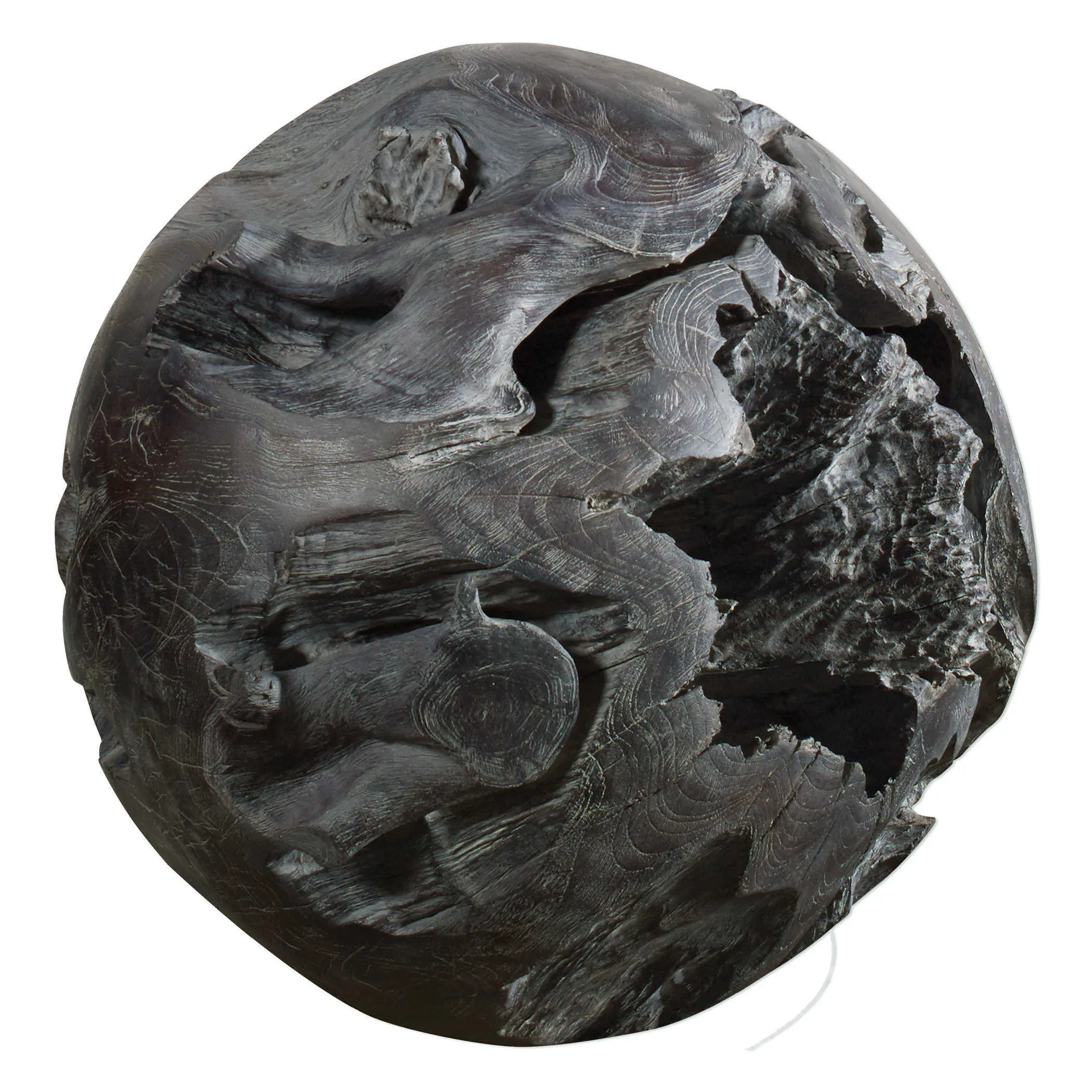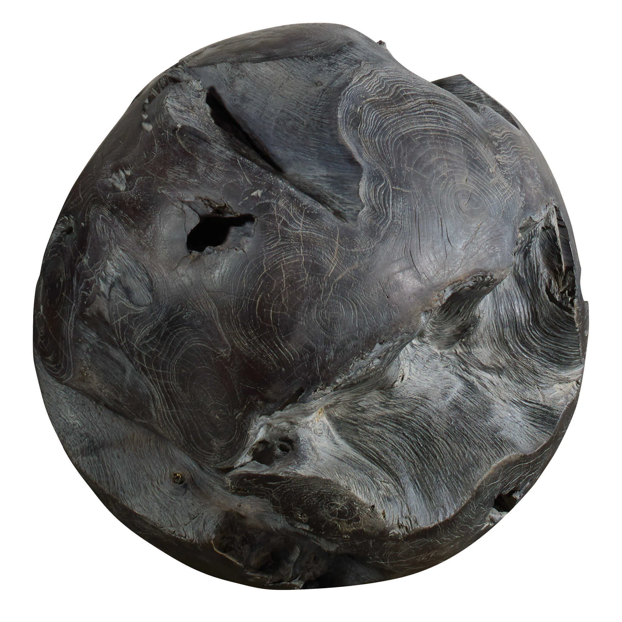 This teak decorative ball brings a rustic and warm atmosphere to any bare corner, balcony or terrace. Beautifully handcrafted and finished with a fossil gray stain. Each will vary in size due to being uniquely handcrafted. Cracks and variations in grain are normal.