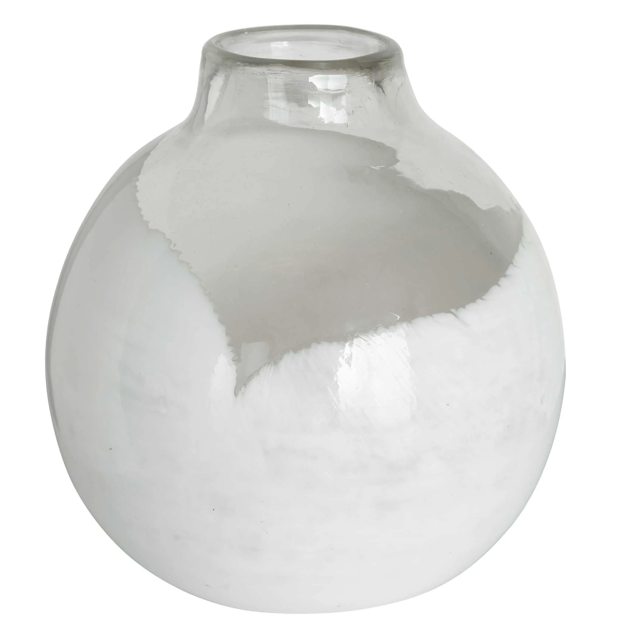 The Rondure Vase is made of clear and white handblown case glass. Made by artisans, with a soft-cut top, every vase has unique characteristics.