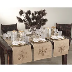 Embroidered xmas tree design table runner for a festive holiday table setting. 100% polyestermachine washableimported