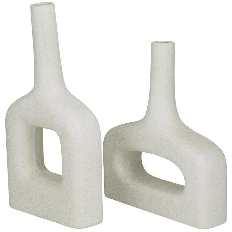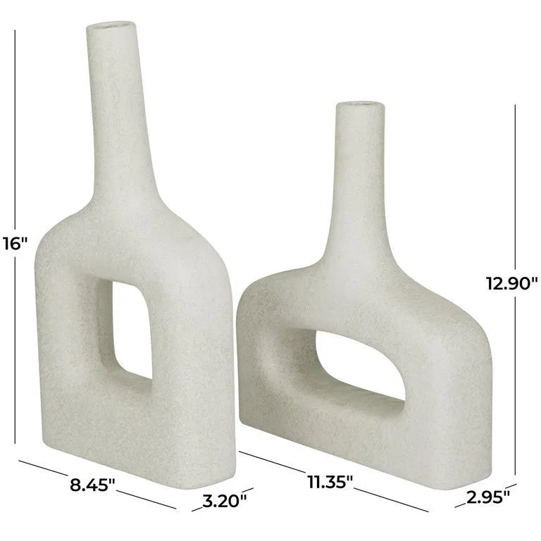 - Stoneware is molded and sculpted with a unique shape to form this abstract style set of vases