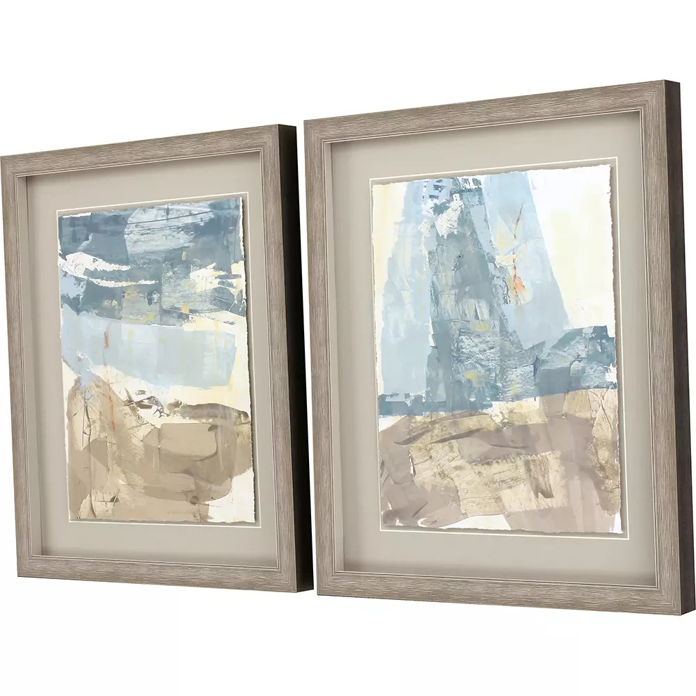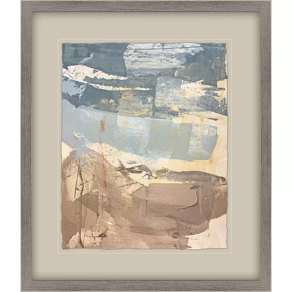 Abstracts are hand deckled and float mounted on putty matting. Framed in a brushed silver finish shadow box style moulding.
