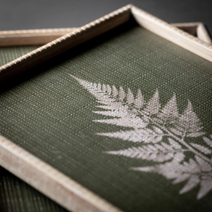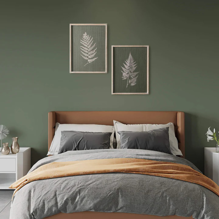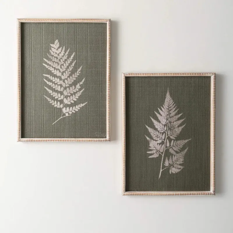 Bring the calming beauty of nature into your home with this stunning set of Stylish Fern Wall Prints from Sullivans. Featuring a unique white print on a green fabric backdrop, these prints are framed in a charming whitewashed wood for a rustic, farmhouse-inspired look. Display this set of 2 wall art pieces in your living room, bedroom, or office for a touch of organic elegance that complements any decor. These versatile fern prints are the perfect way to add a natural, botanical element to your walls and infuse your space with a sense of tranquility.