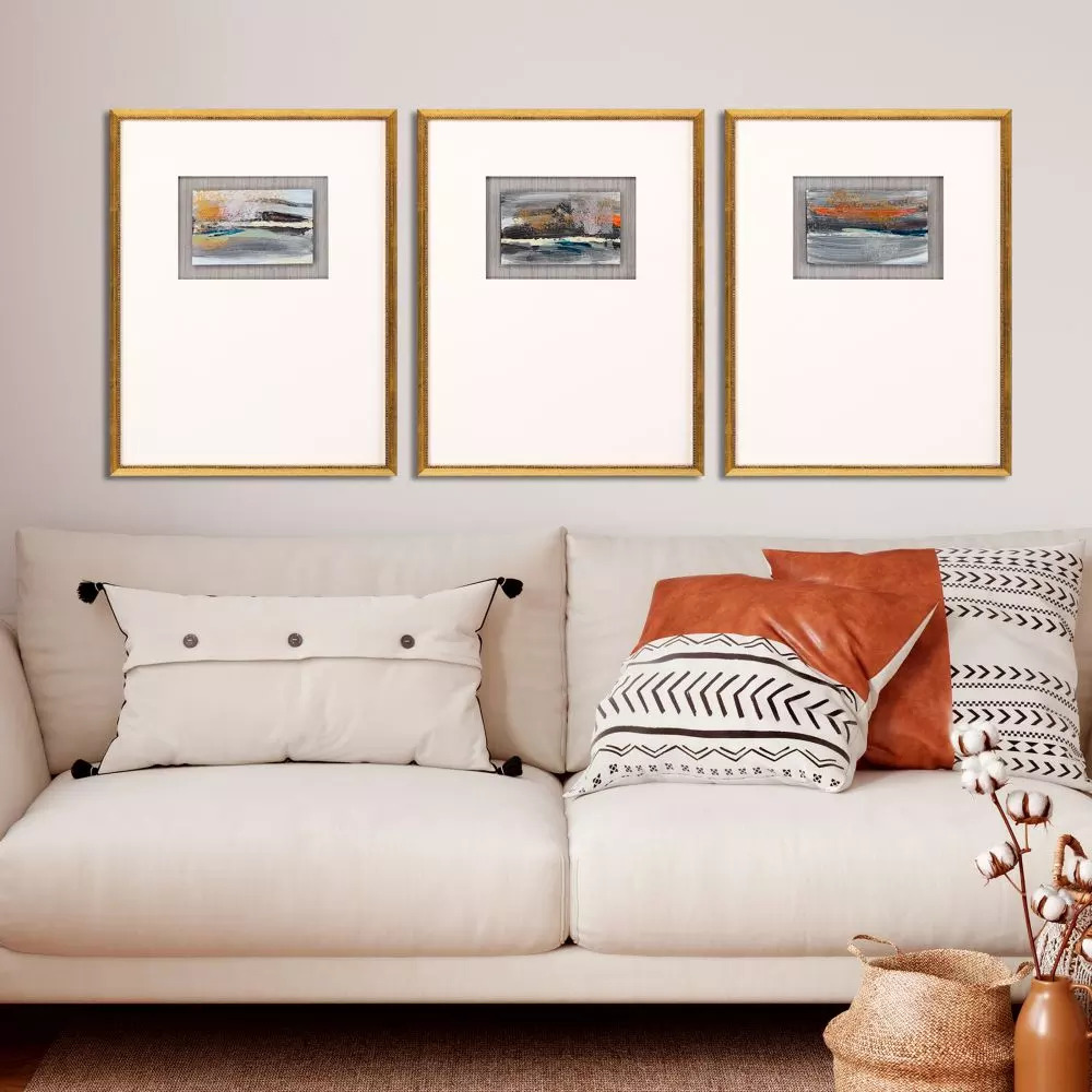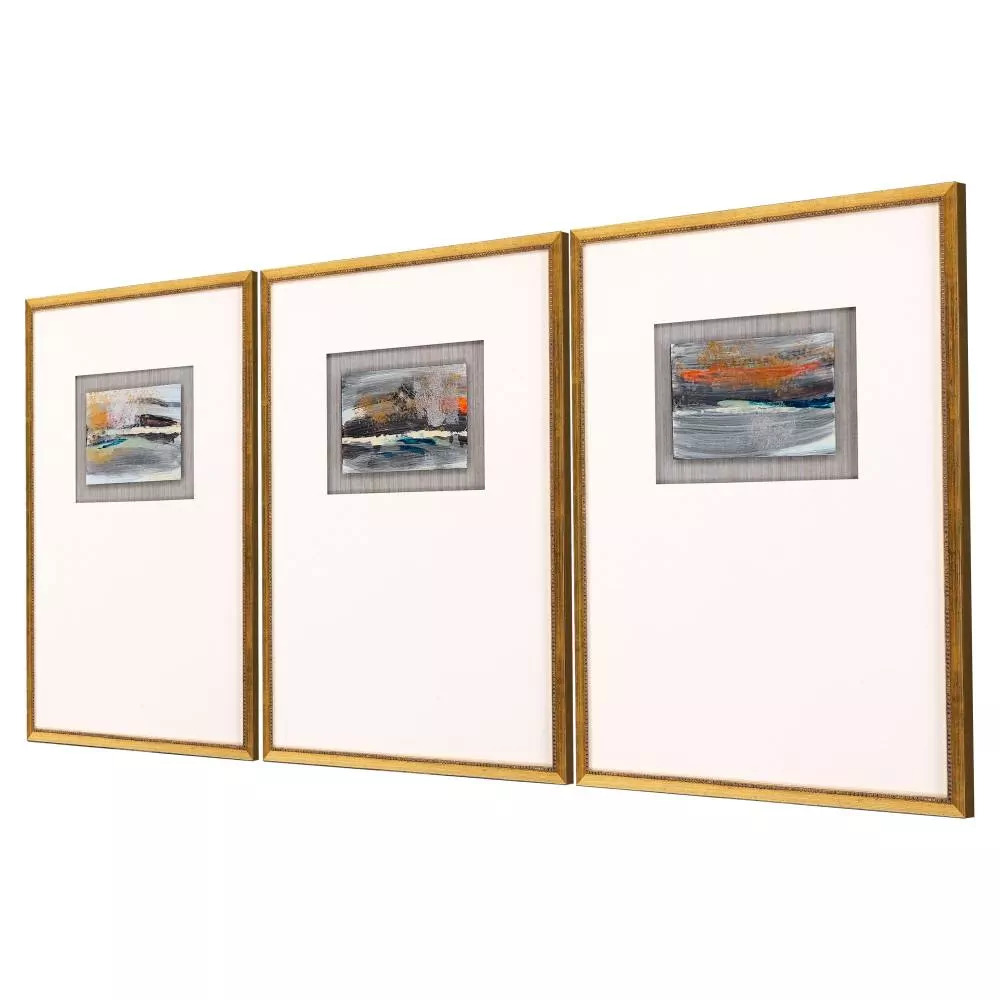 Exclusive hand painted on metallic paper and float mounted. Framed in a traditional antique gold wood with beaded lip.