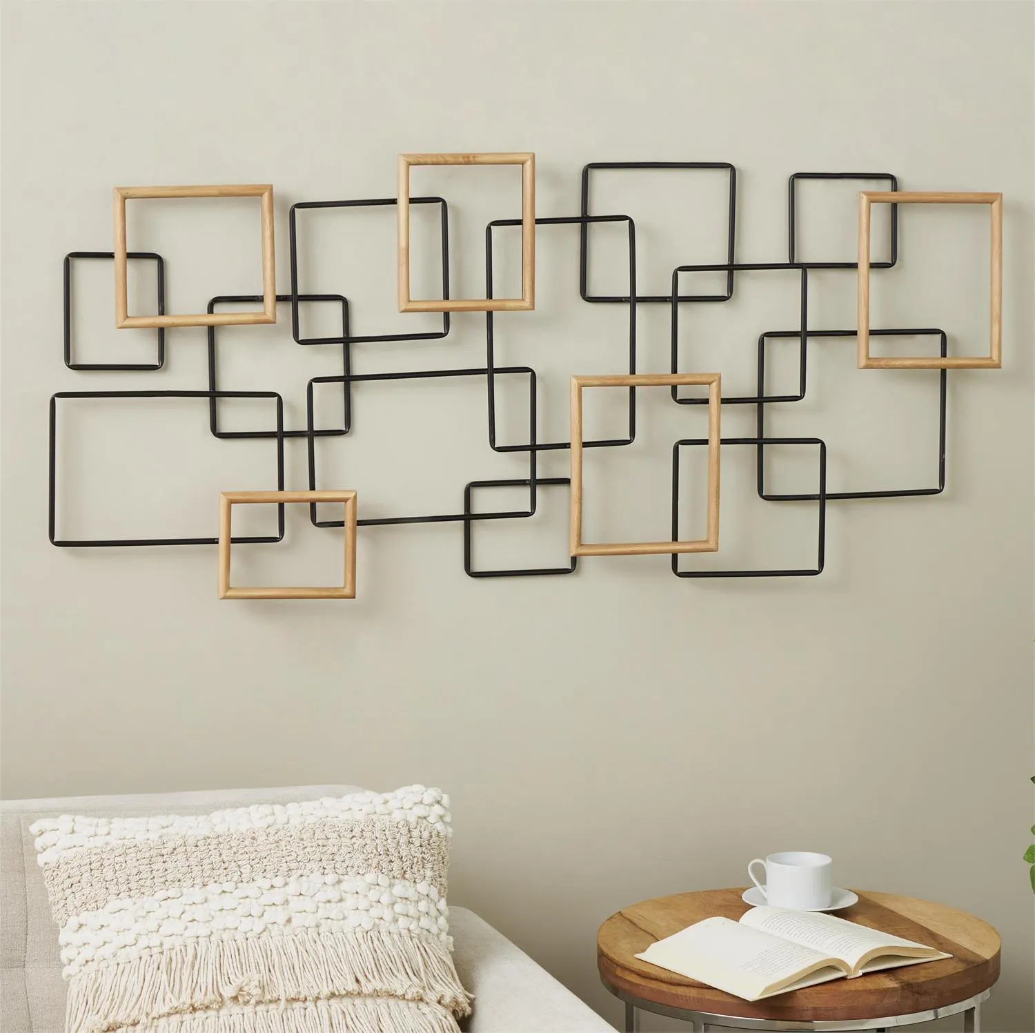 - Matte black wall art for living room is uniquely designed with many overlapping rectangles, providing a balanced visual appeal that resonates with modern aesthetics