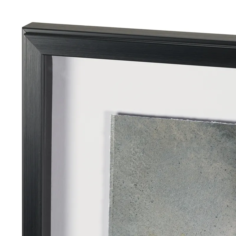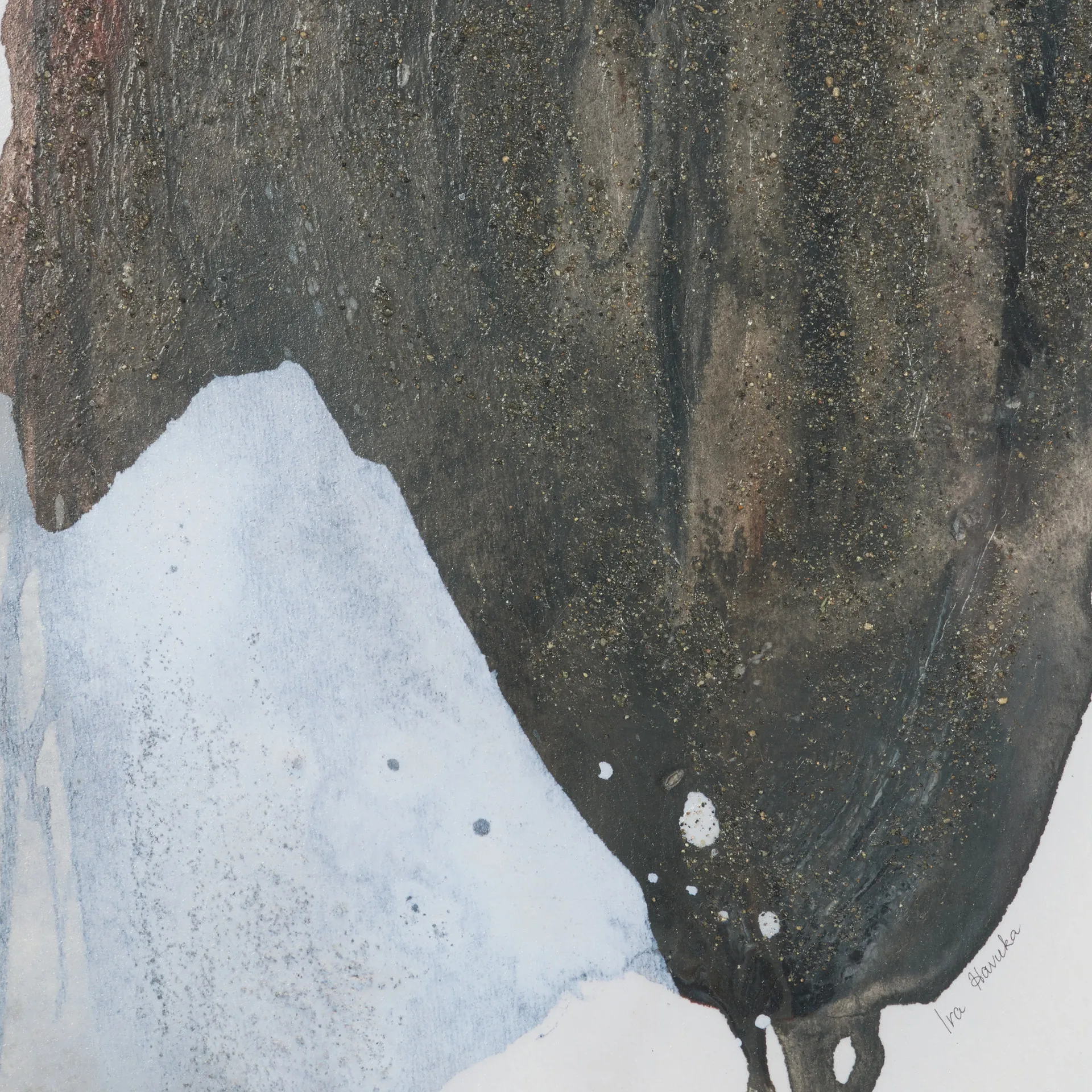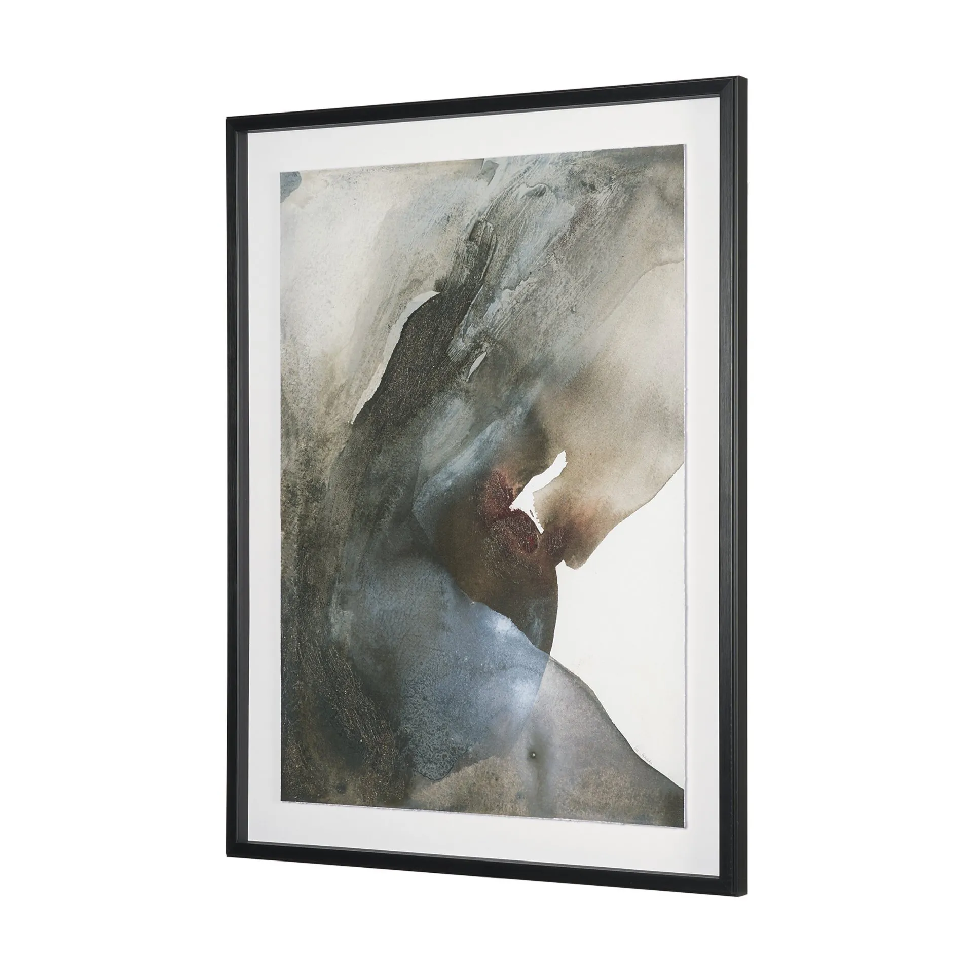 Ediface III" by Ira Havuka is a mesmerizing portrait that captures the ethereal essence of introspection through fluid brushstrokes and layered textures. Crafted with emotive swirls of earthy grays, deep blues, and hints of warm rust, the artwork explores the serene interplay of shadow and light. Framed in a sleek black wood, its elegant simplicity complements the piece’s sophisticated depth, making it a captivating focal point for any modern space.