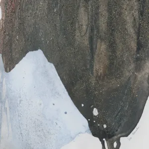 Features a blend of muted grays, soft browns, and deep blues, creating a serene and contemplative atmosphere with gentle contrasts.