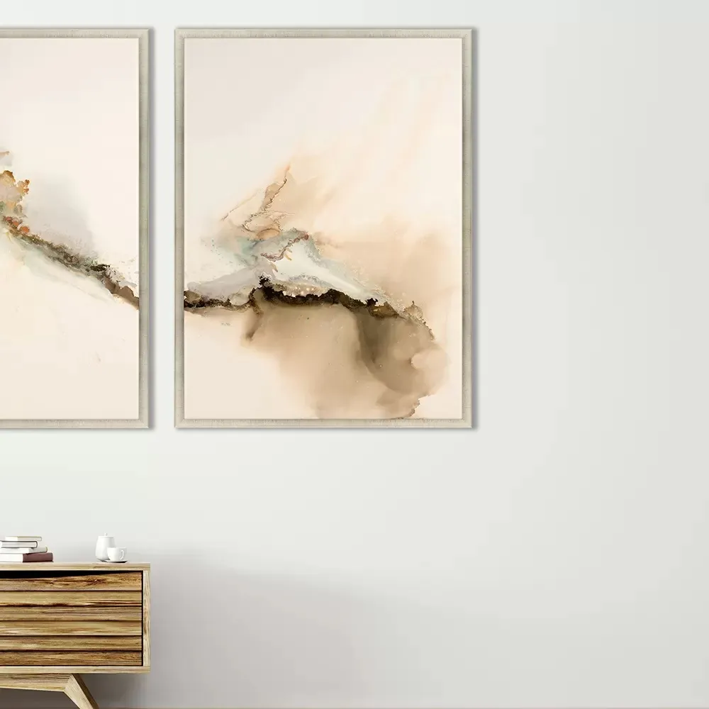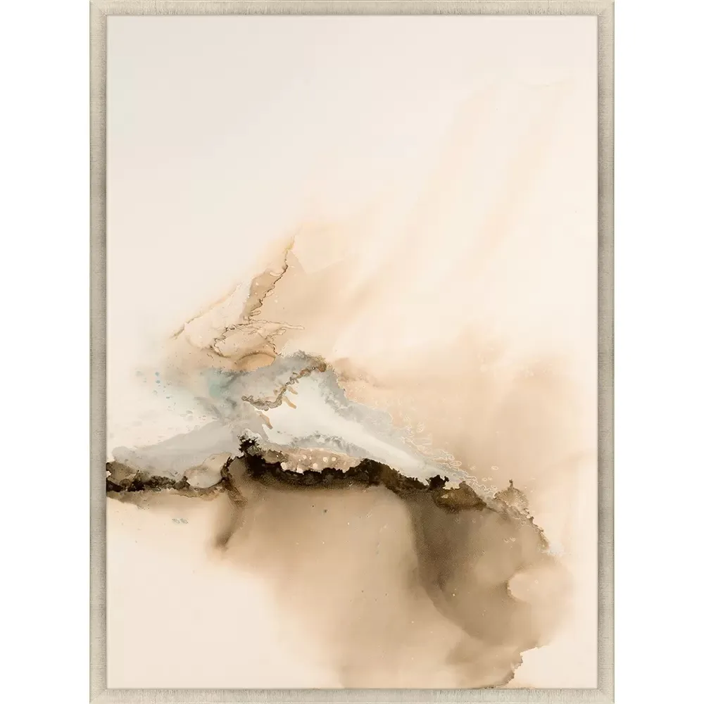 A neutral background with exciting moments of blue and rust enhances the beauty of this organic art. Framed in a champagne gold finish block molding.