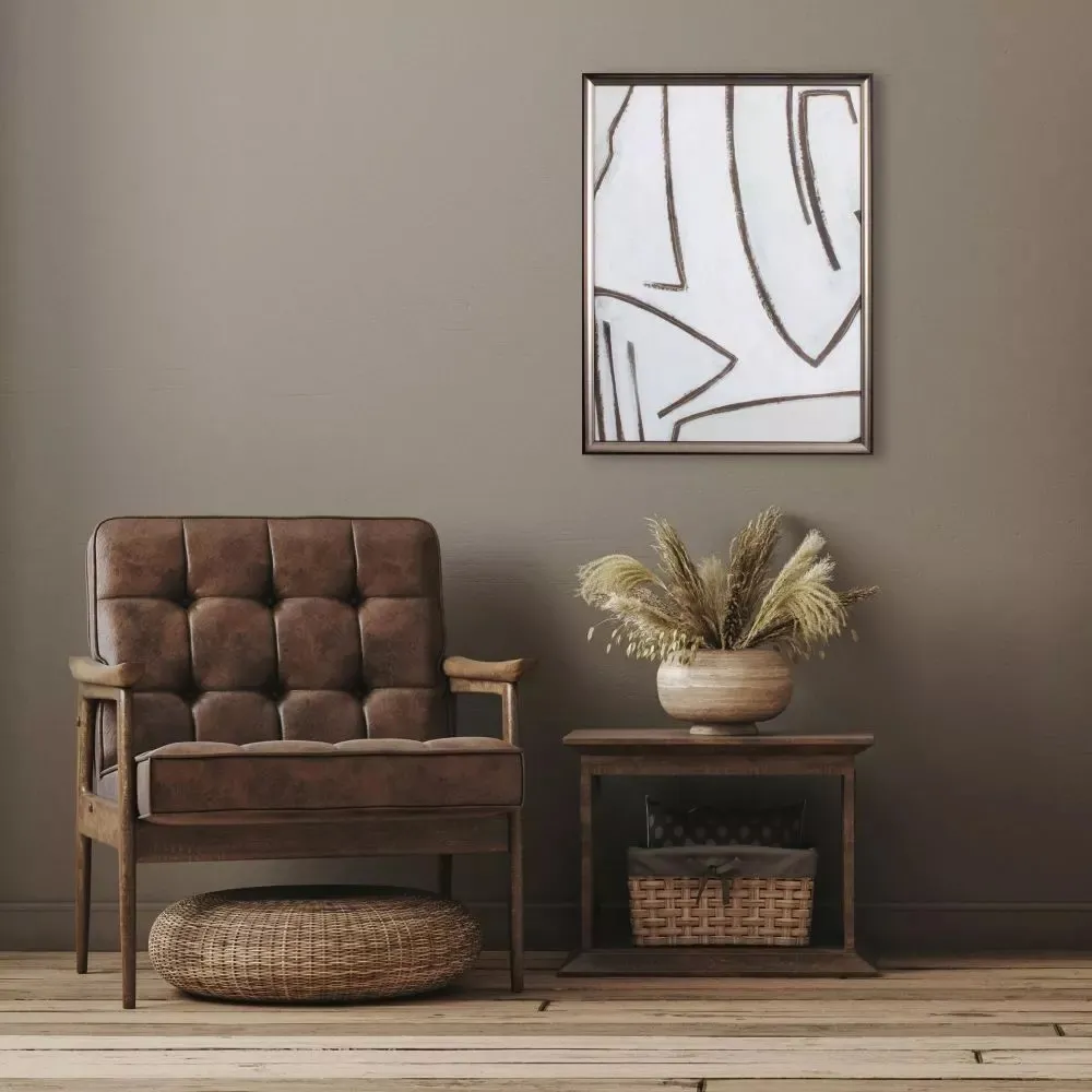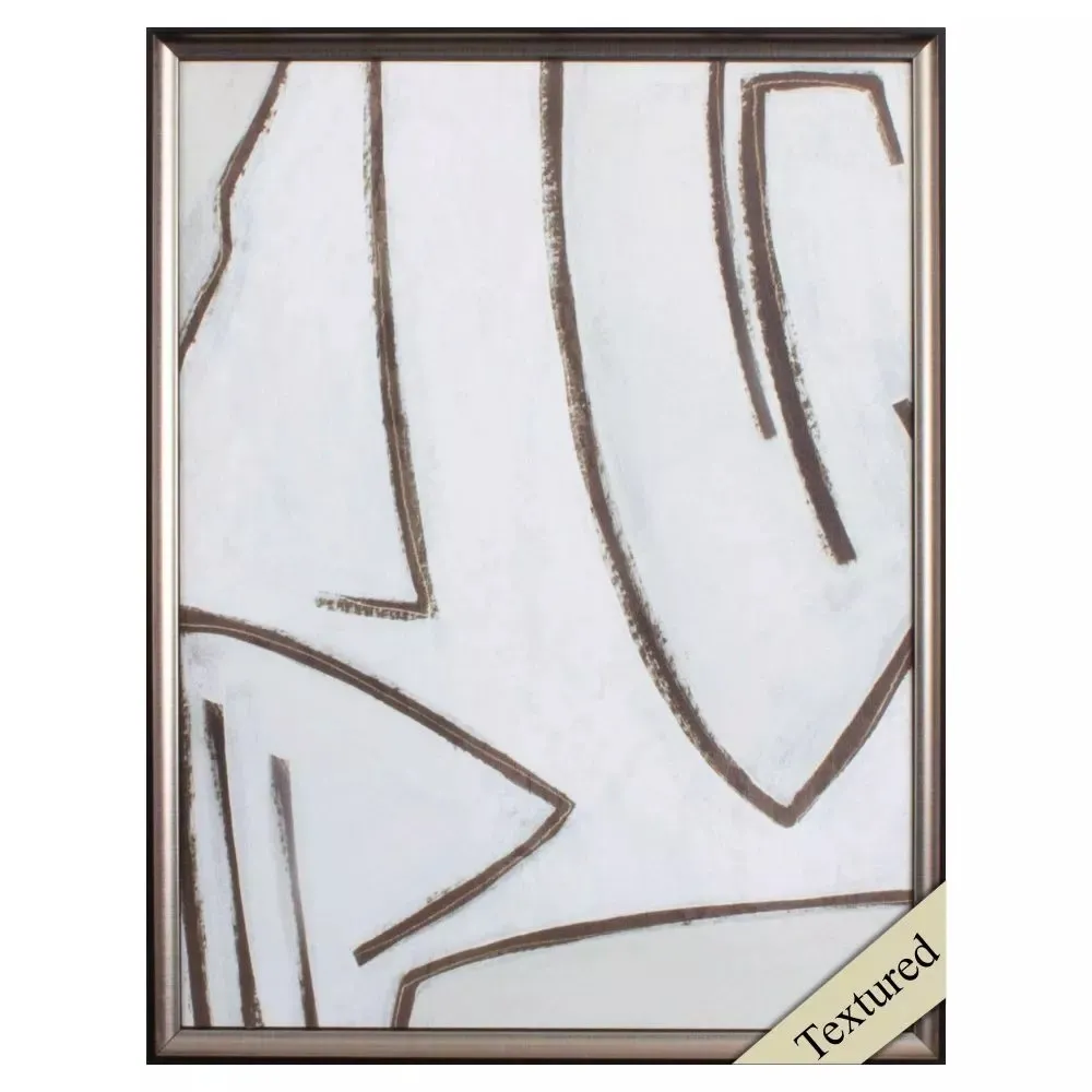A contemporary abstract print with a hand applied acrylic overlay. This no glass item is paired with a dark bronze metallic frame.