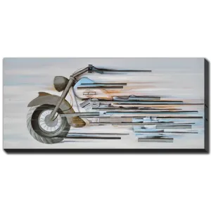 Hand embellished canvas art in a Natural wood color floating frame