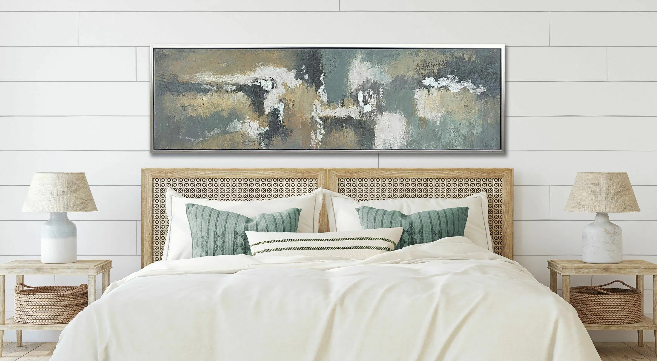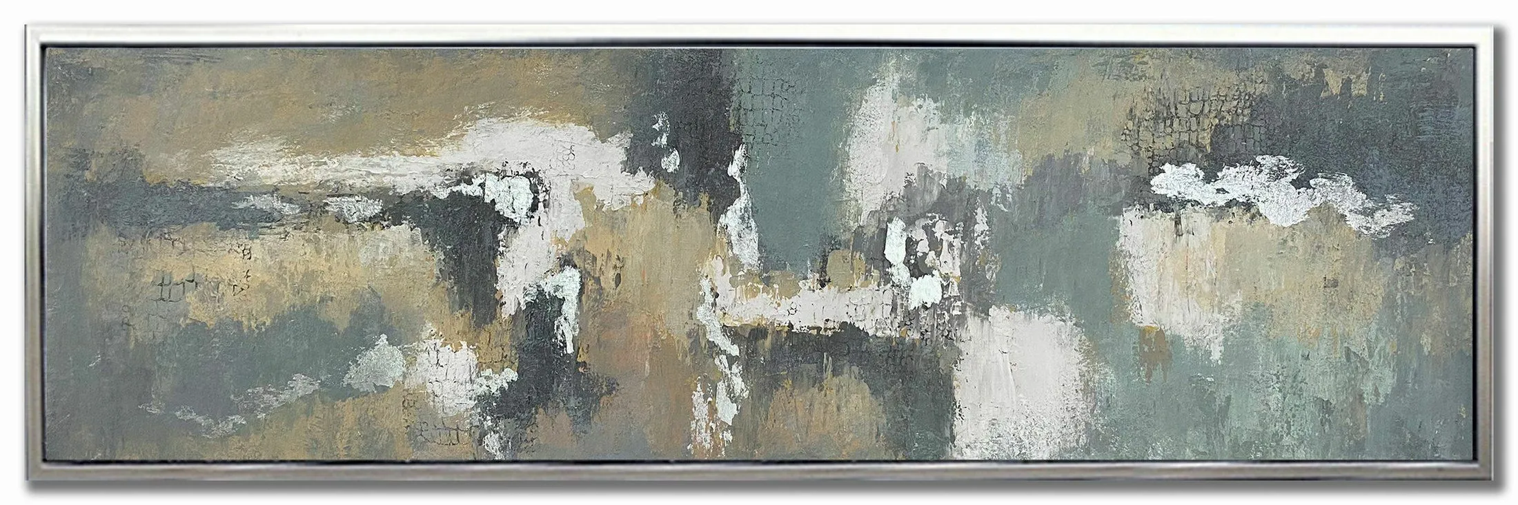 Oil painting with texture on gallery wrapped canvas in a silver floating frame