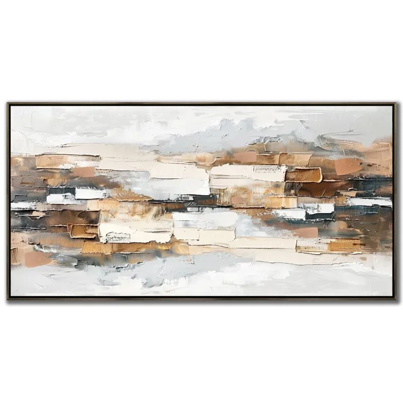 Hand embellished canvas art in a chocolate colored floating frame