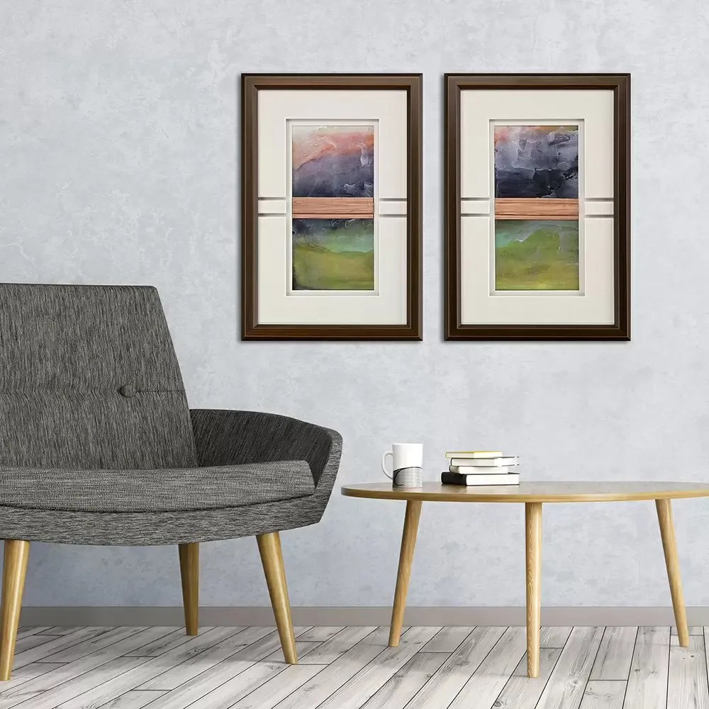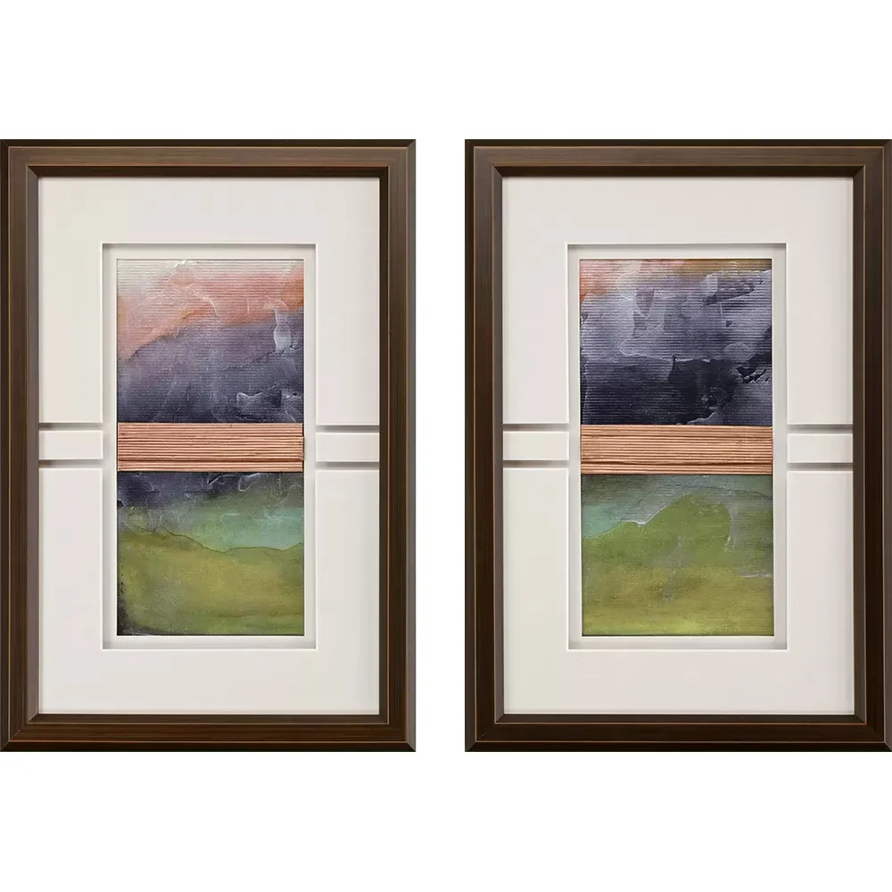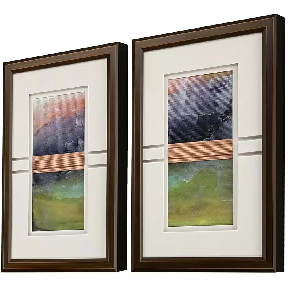 ContemporaryHand embellished mixed media collage. Framed in a contemporary dark antique bronze wood.