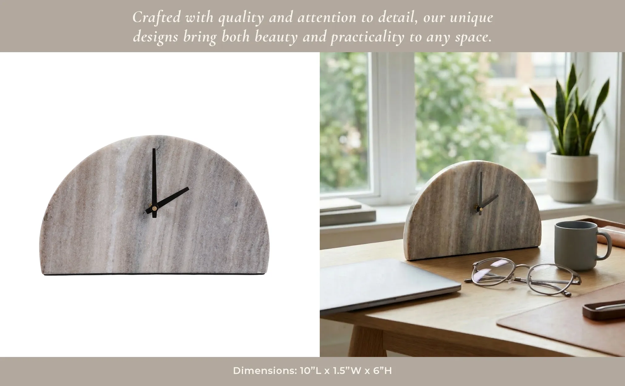 The 10x6" Half Dome Marble Clock, Beige may be available at Designer Furniture Gallery in the St. George and St. George areas. Please contact us to check availability.