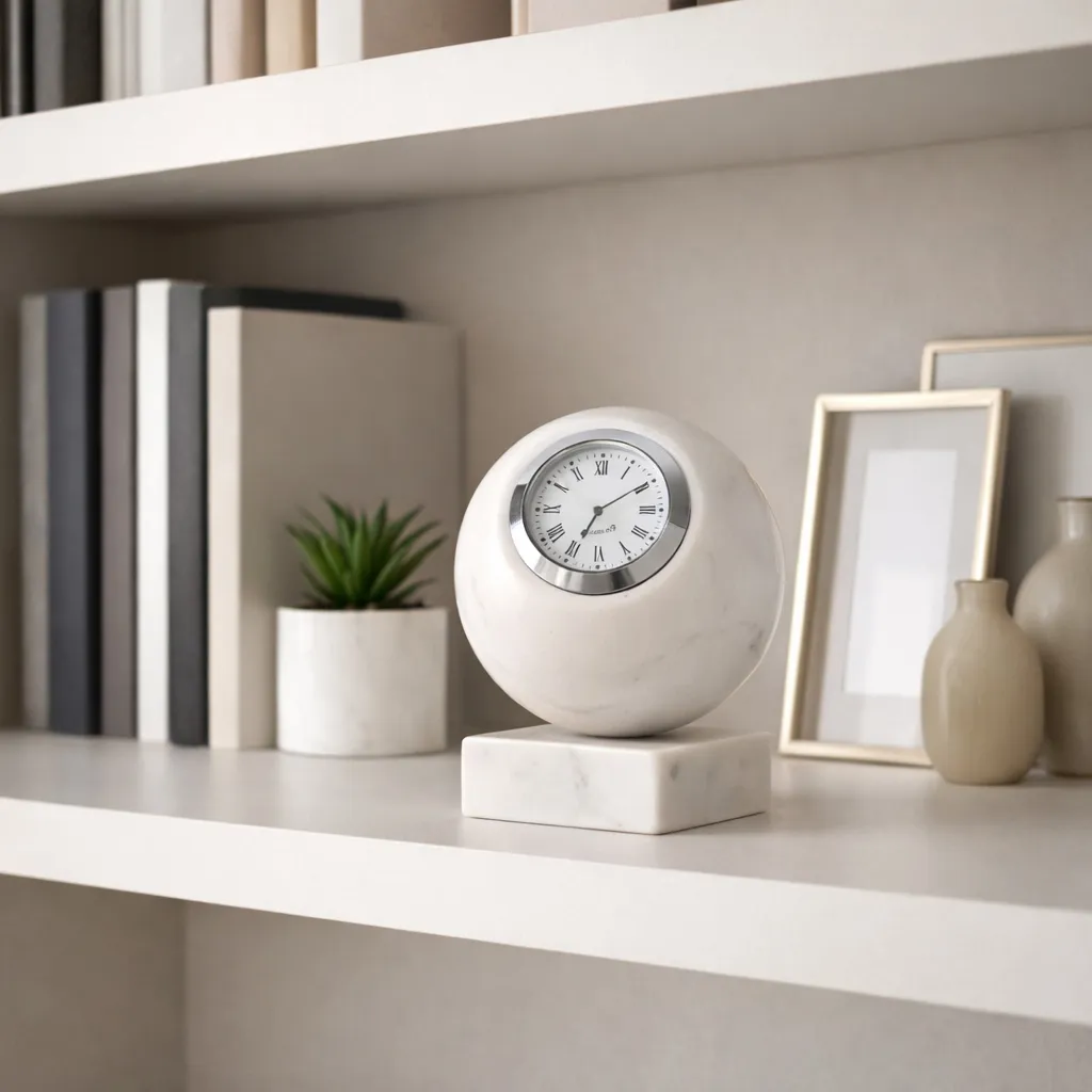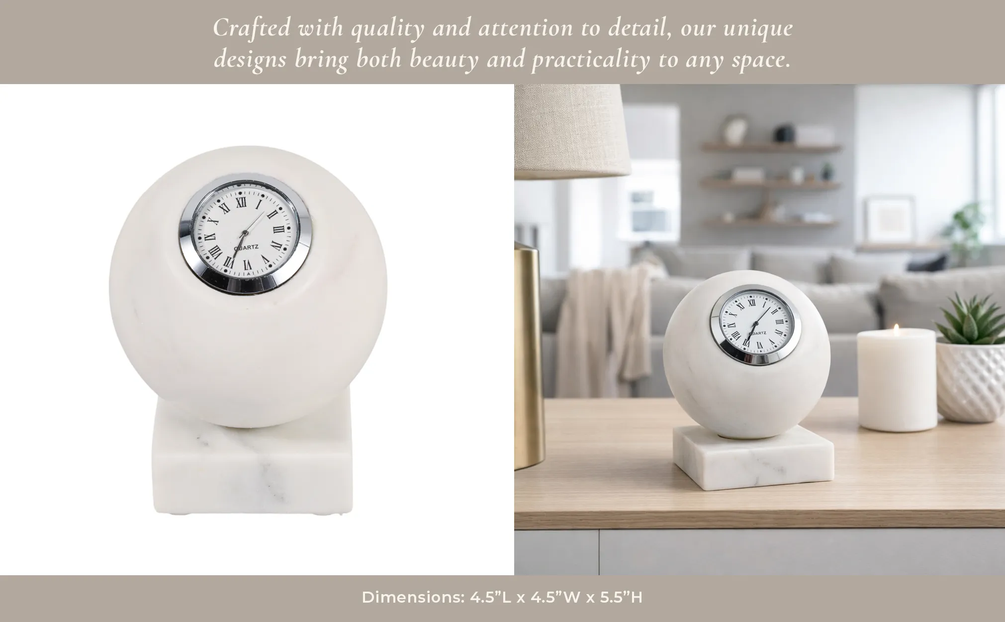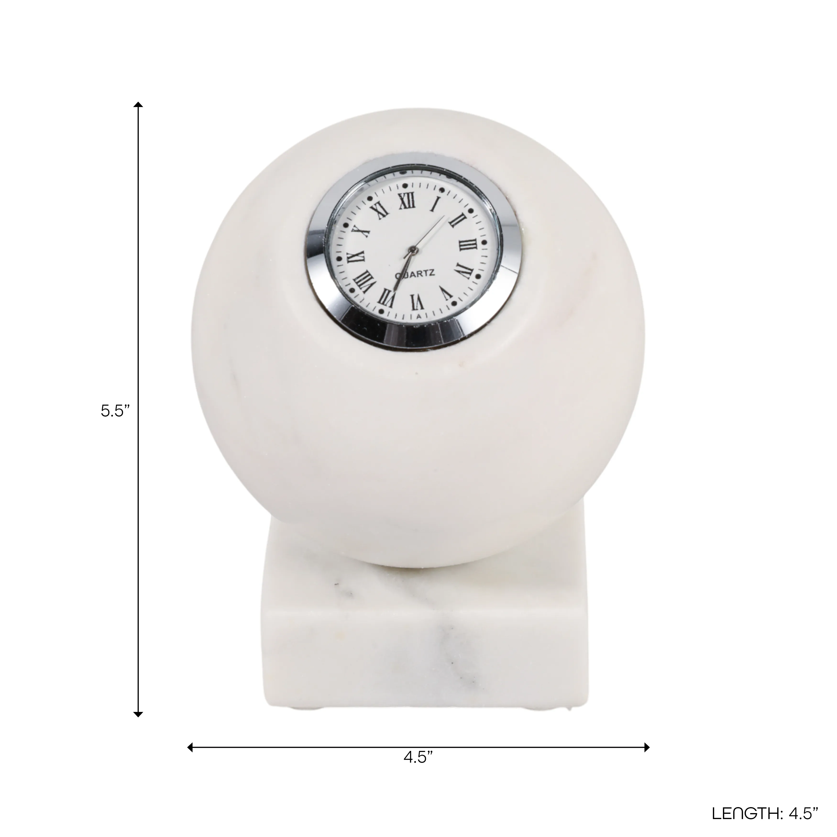 The 5x4" Round Marble Clock On Base, White/silver may be available at Designer Furniture Gallery in the St. George and St. George areas. Please contact us to check availability.