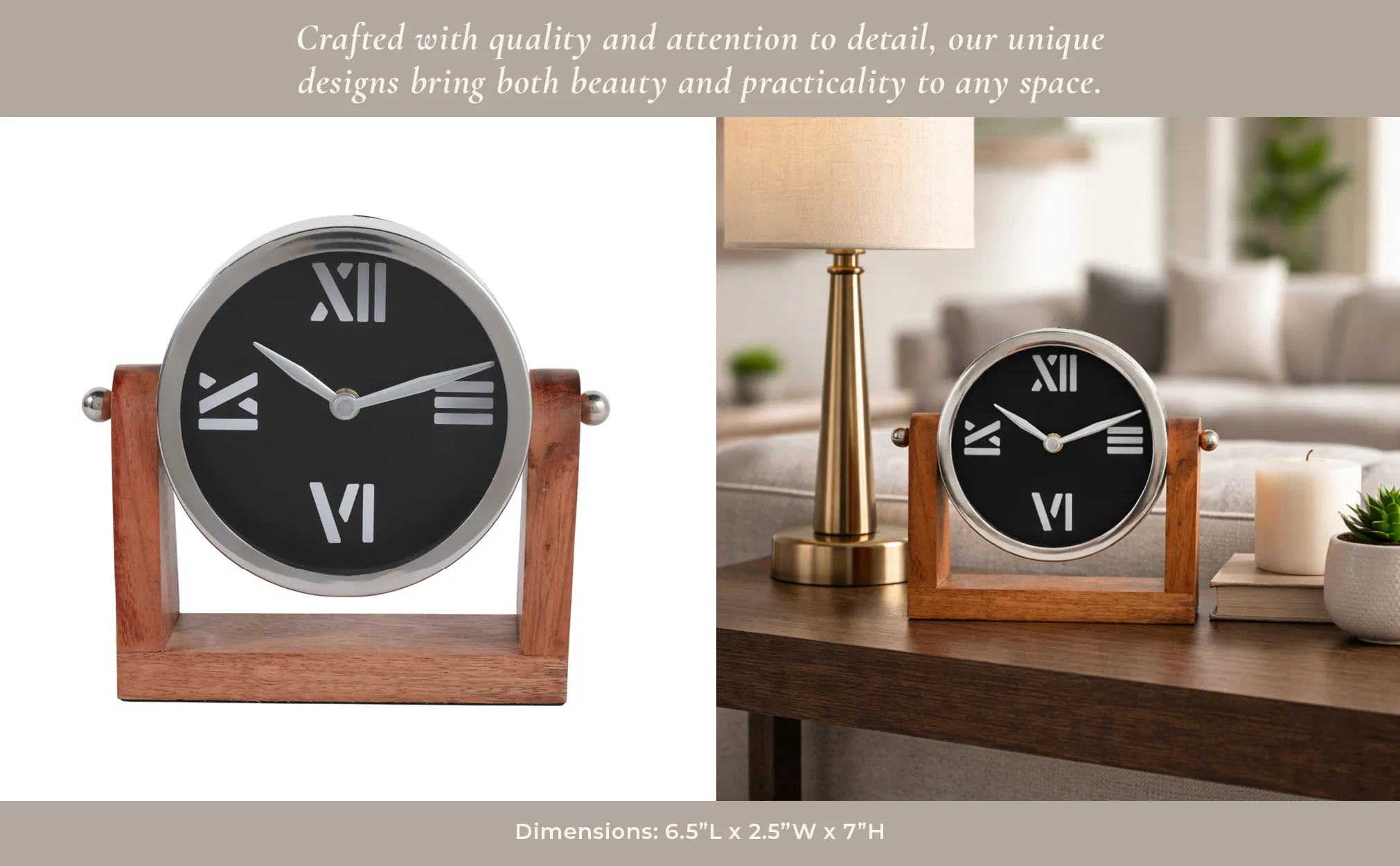 The 7x7" Clock On Wood Base, Natural/silver may be available at Designer Furniture Gallery in the St. George and St. George areas. Please contact us to check availability.