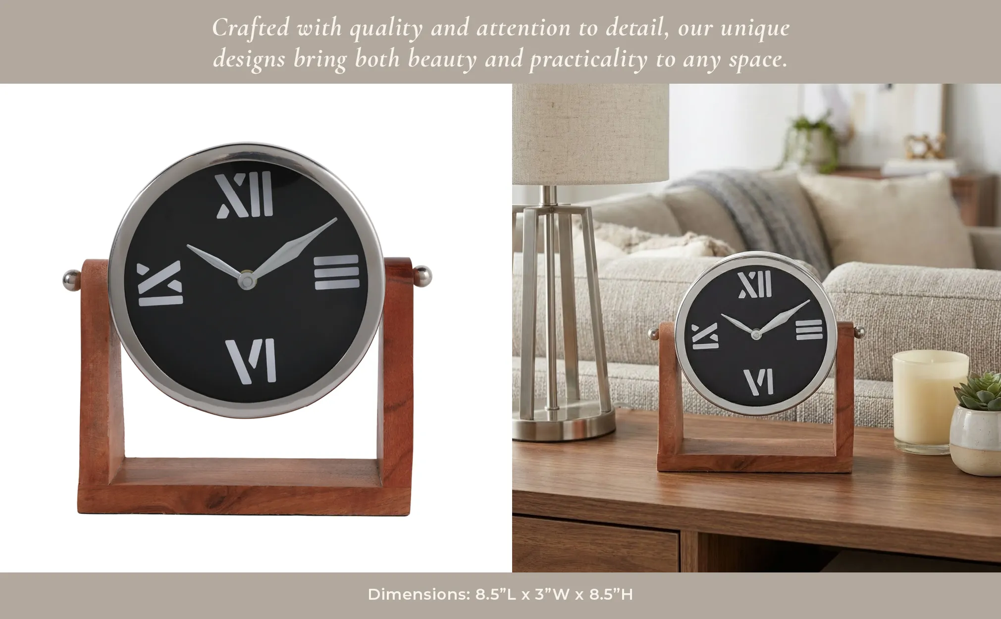The 9x8" Clock On Wood Base, Natural/silver may be available at Designer Furniture Gallery in the St. George and St. George areas. Please contact us to check availability.