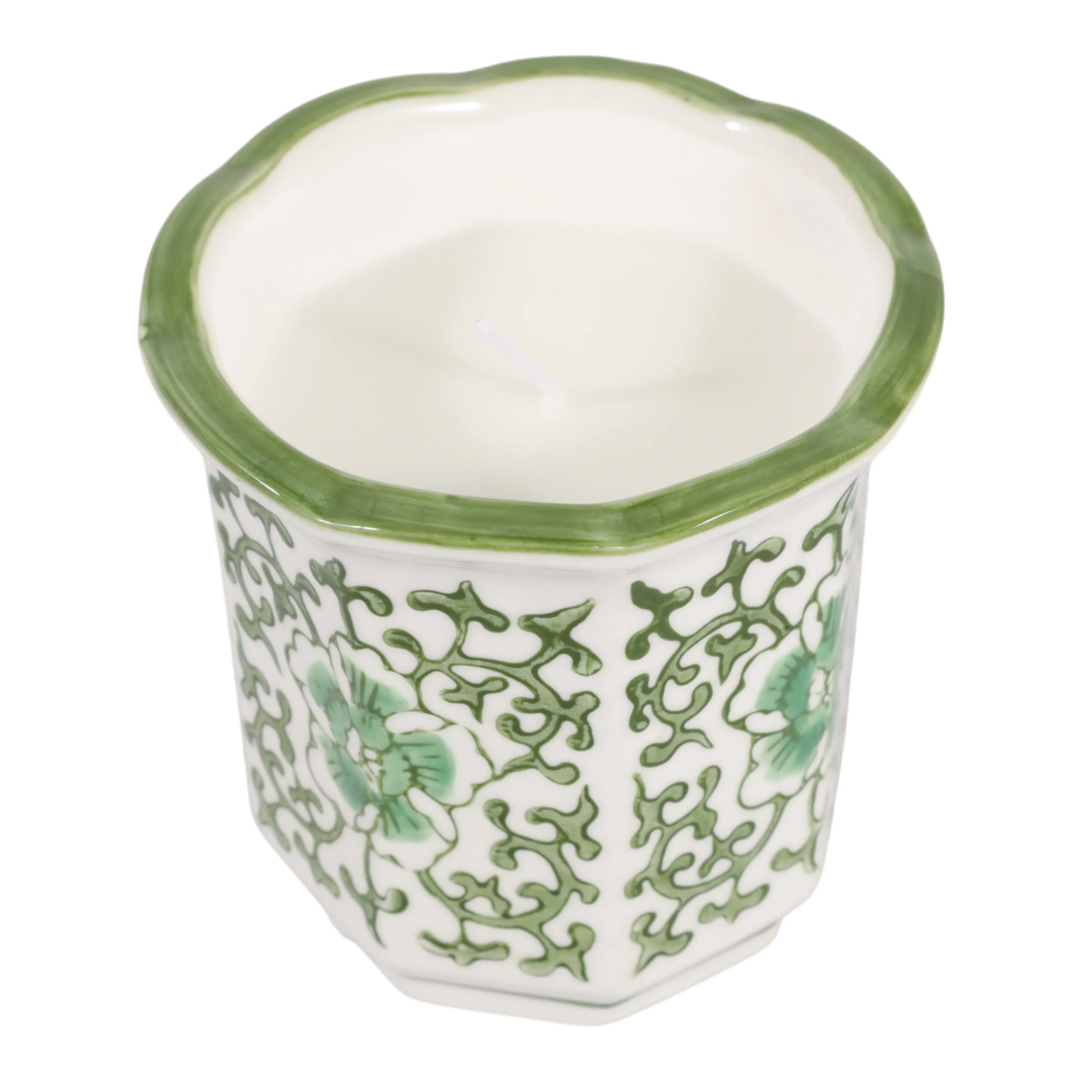 The 4", 6oz Fluted Chinoiserie Candle, Green/white may be available at Designer Furniture Gallery in the St. George and St. George areas. Please contact us to check availability.