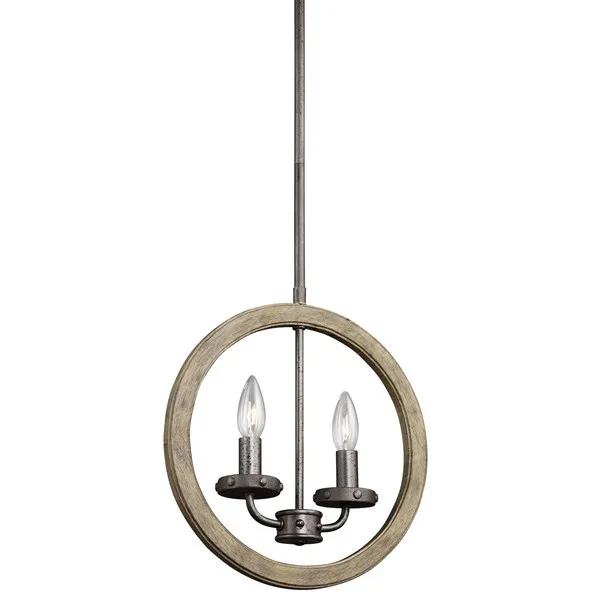 Distressed woods. Hammered metals. Endless charm. With this 2 light pendalette from the Evan™ collection, you will effortlessly elevate and enhance any space in your home. The center column grounds each piece with a furniture-style shape, and the light wood tones coordinate with a rich Distressed Antique Gray Wood finish and Anvil Iron detailing.