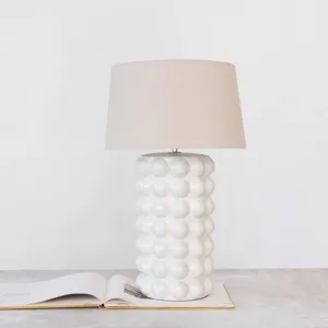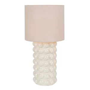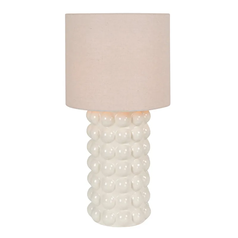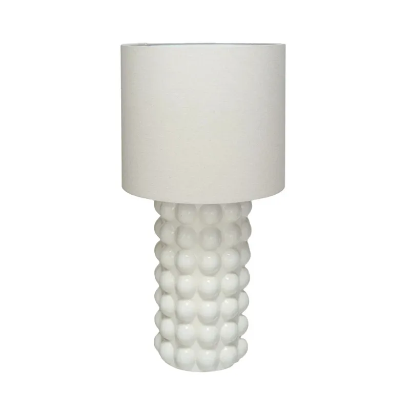 Stoneware Hobnail Table Lamp w/ Linen Shade